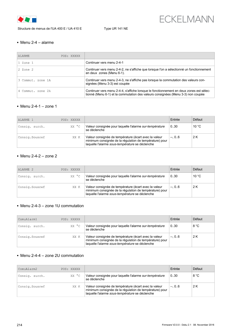 8 Structure de menus de l'UA 400 E / UA 410 E