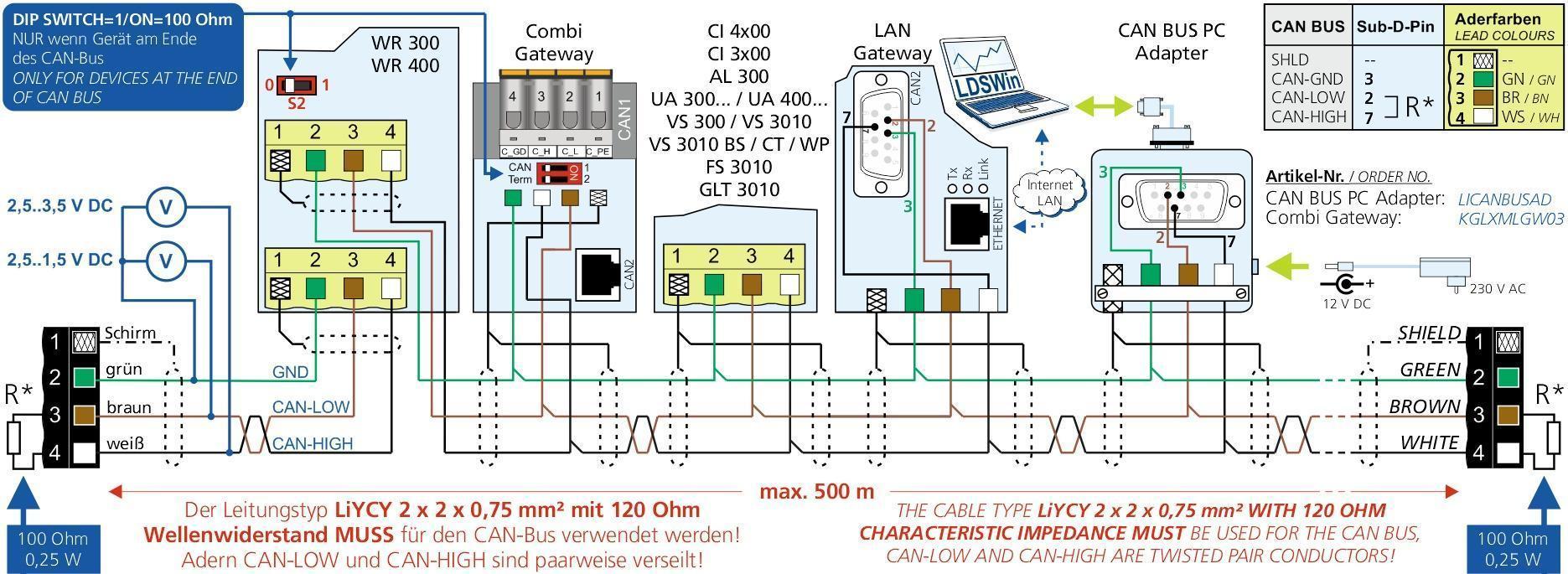(1=SHLD; 2=CAN-GND/green; 3=CAN-LOW/brown; 4=CAN-HIGH/white).