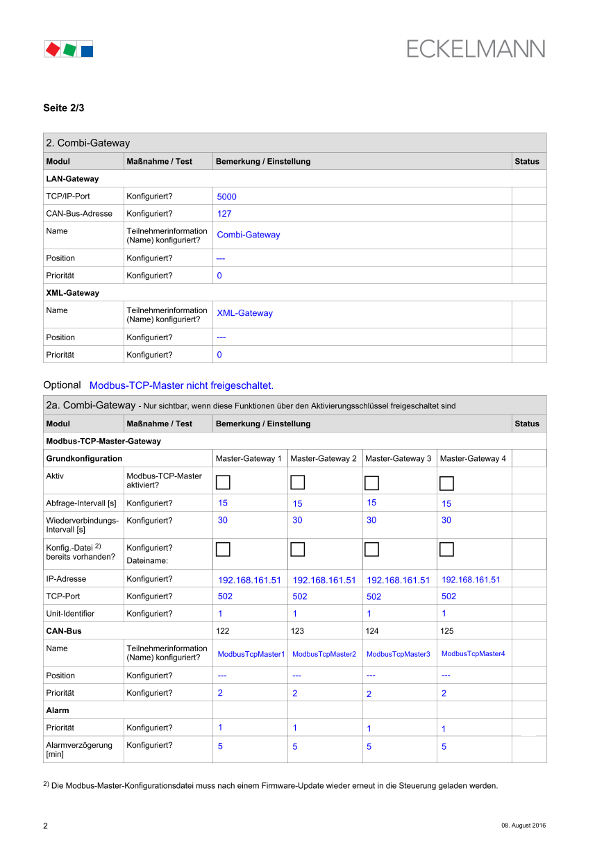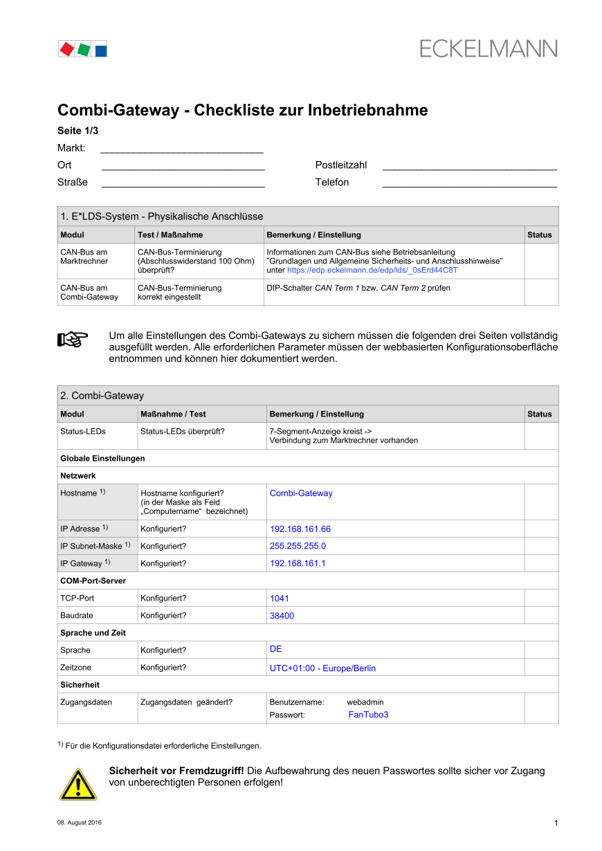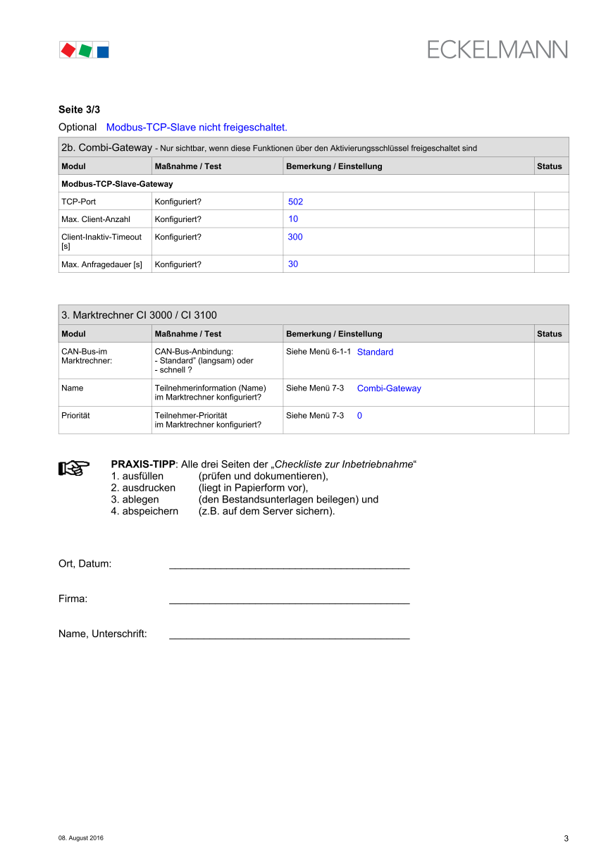 Checkliste zur Inbetriebnahme - ausgefüllt