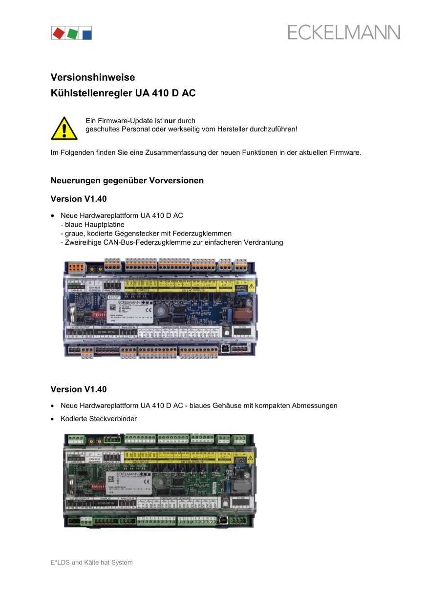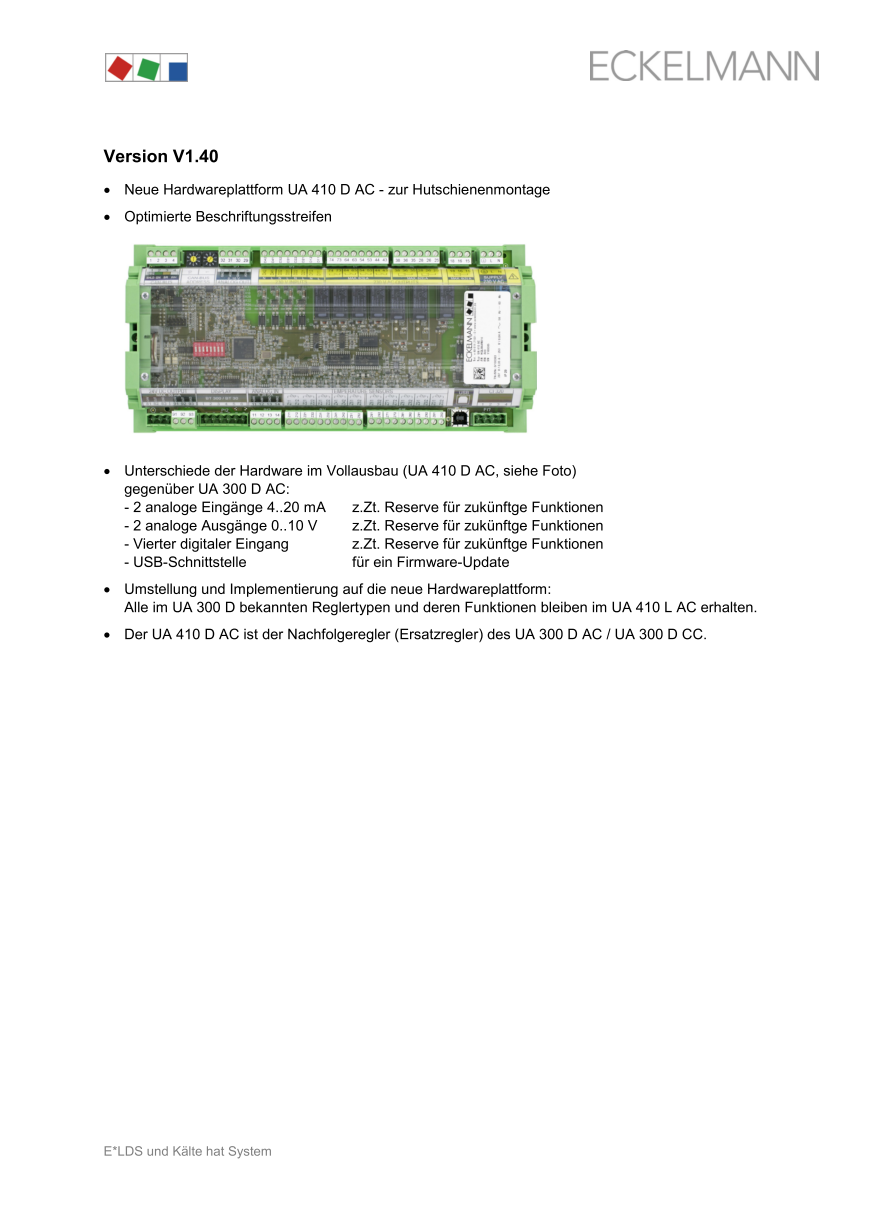 Versionshinweise UA 410 D V1.40