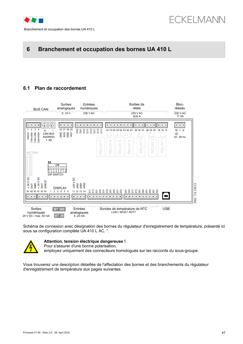 6 Pin and Terminal Assignments of UA 410 L