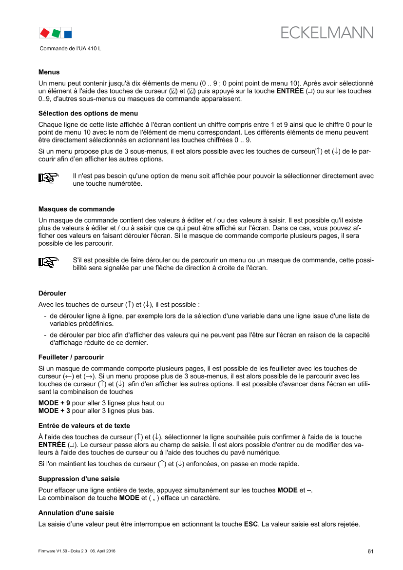 UA 410 L ­Operating instruction - V1.50