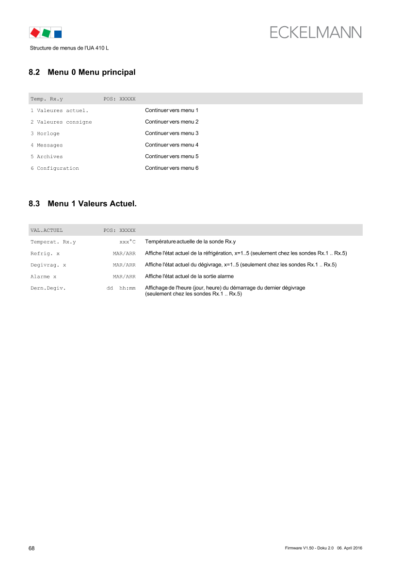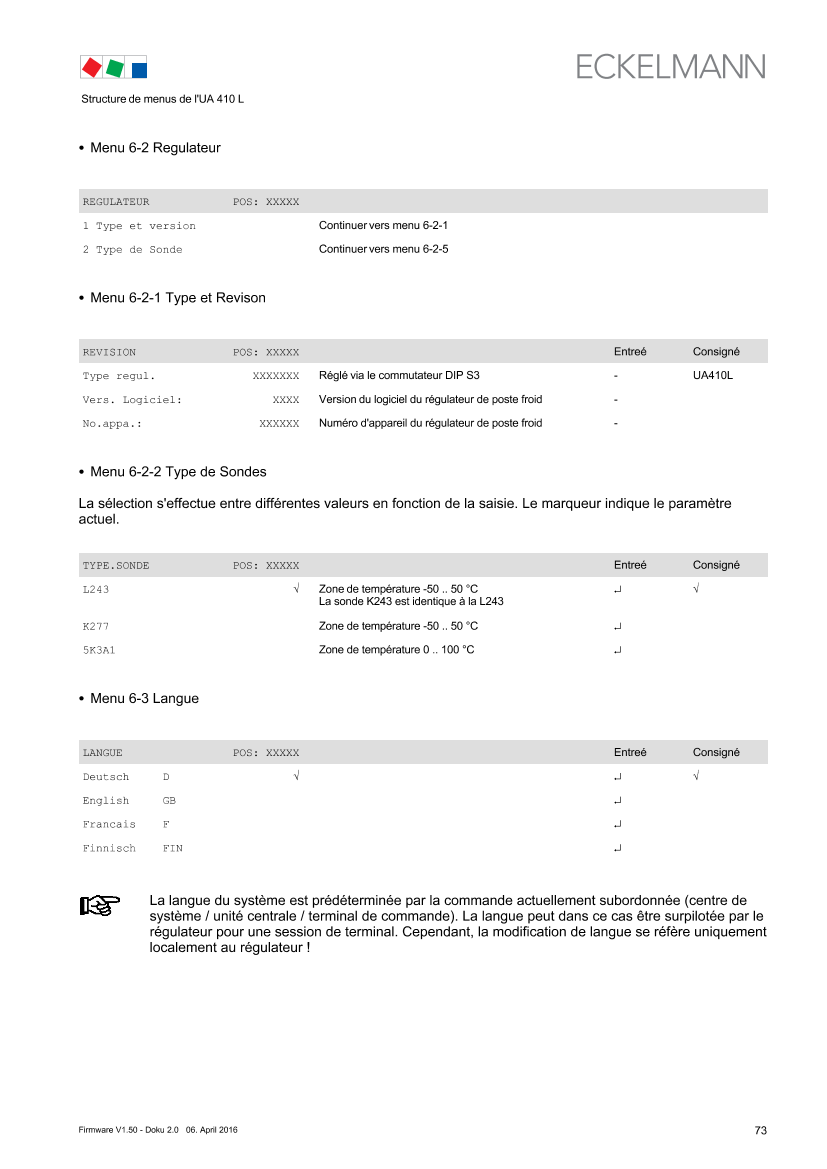 Controller type UA 410 L – Menu tree (Rx.1 to Rx.0)