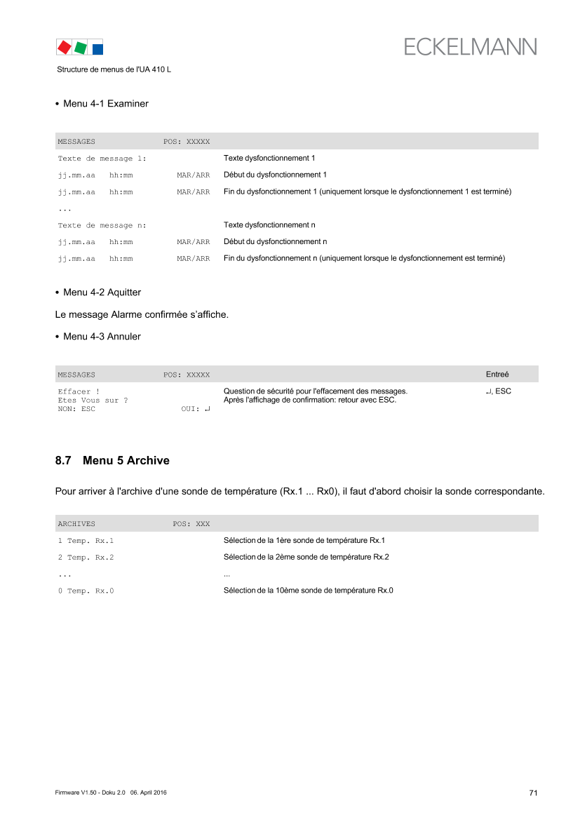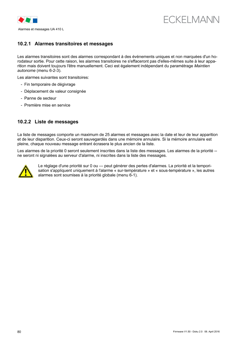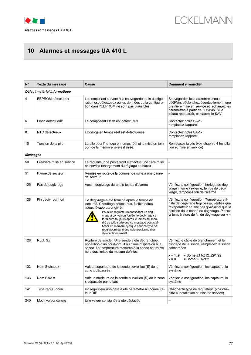 10 Alarms and Messages of UA 410 L