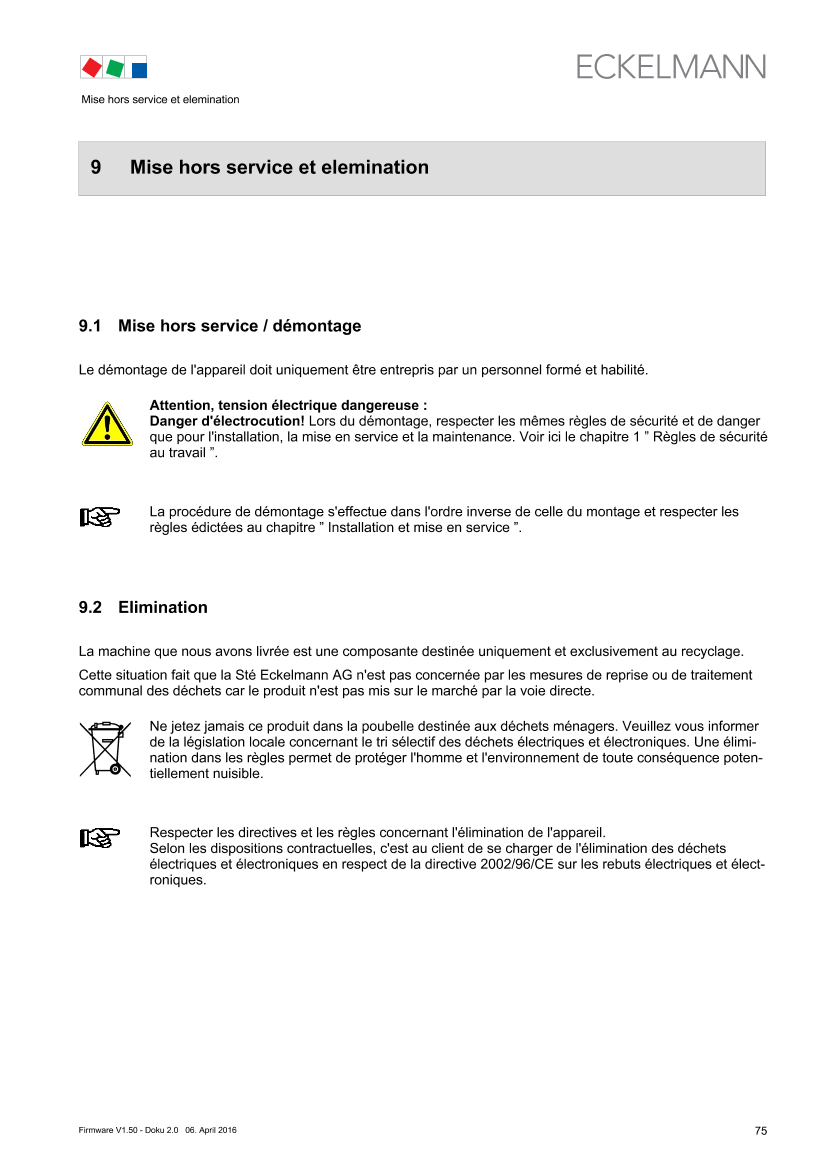 9 Decommissioning and disposal