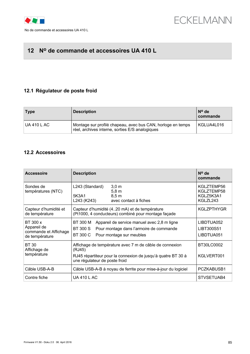 12 Order numbers and accessories of UA 410 L