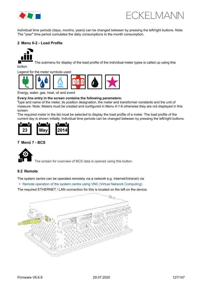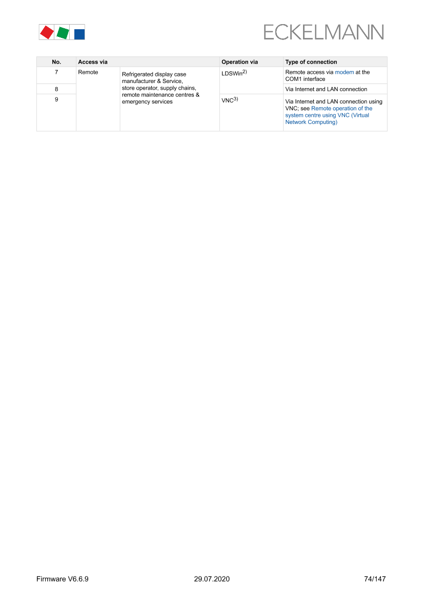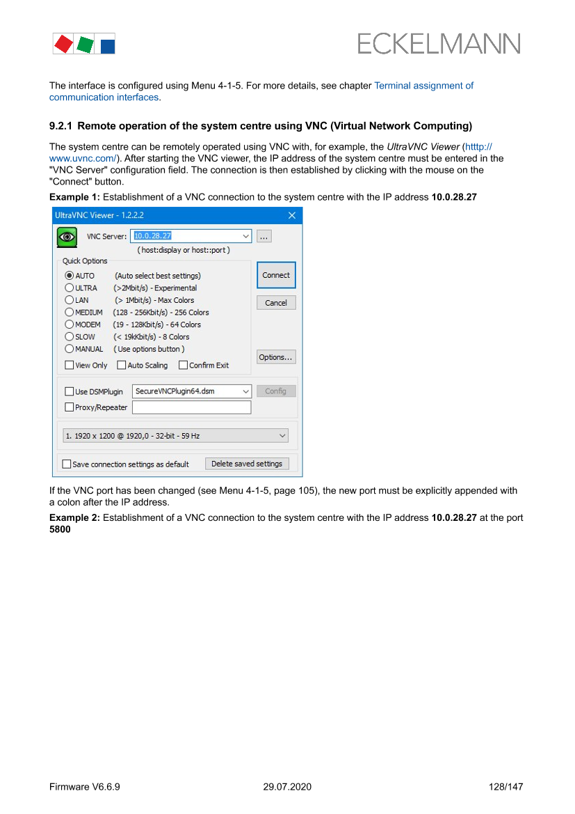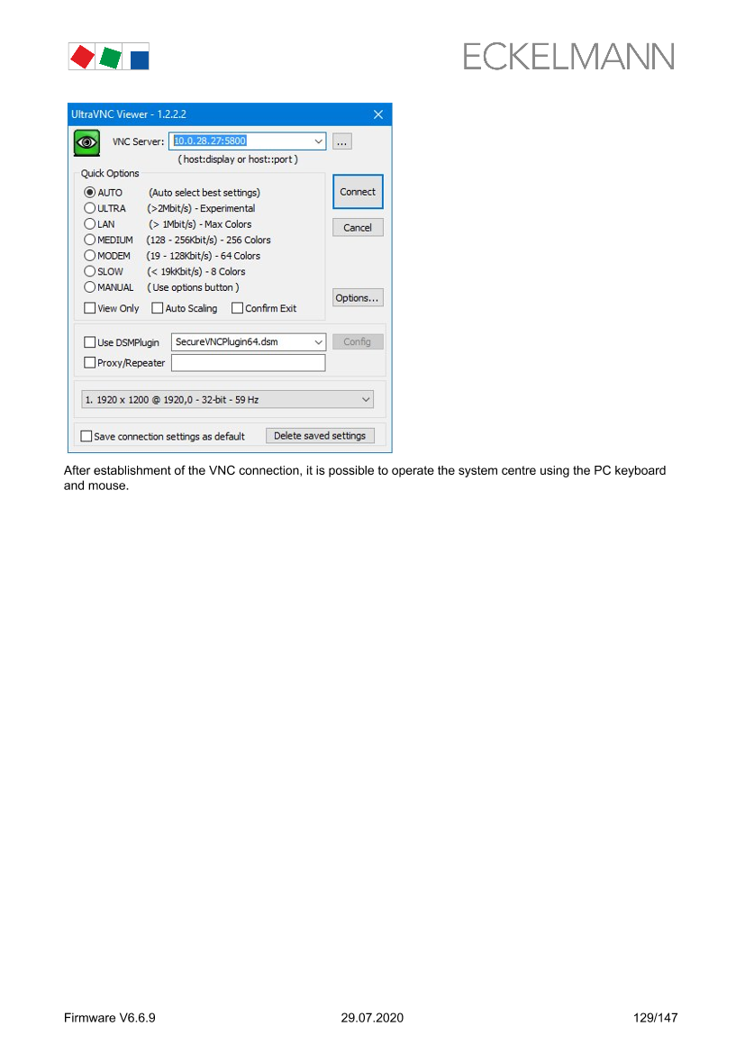 Remote operation of the system centre using VNC (Virtual Network Computing)