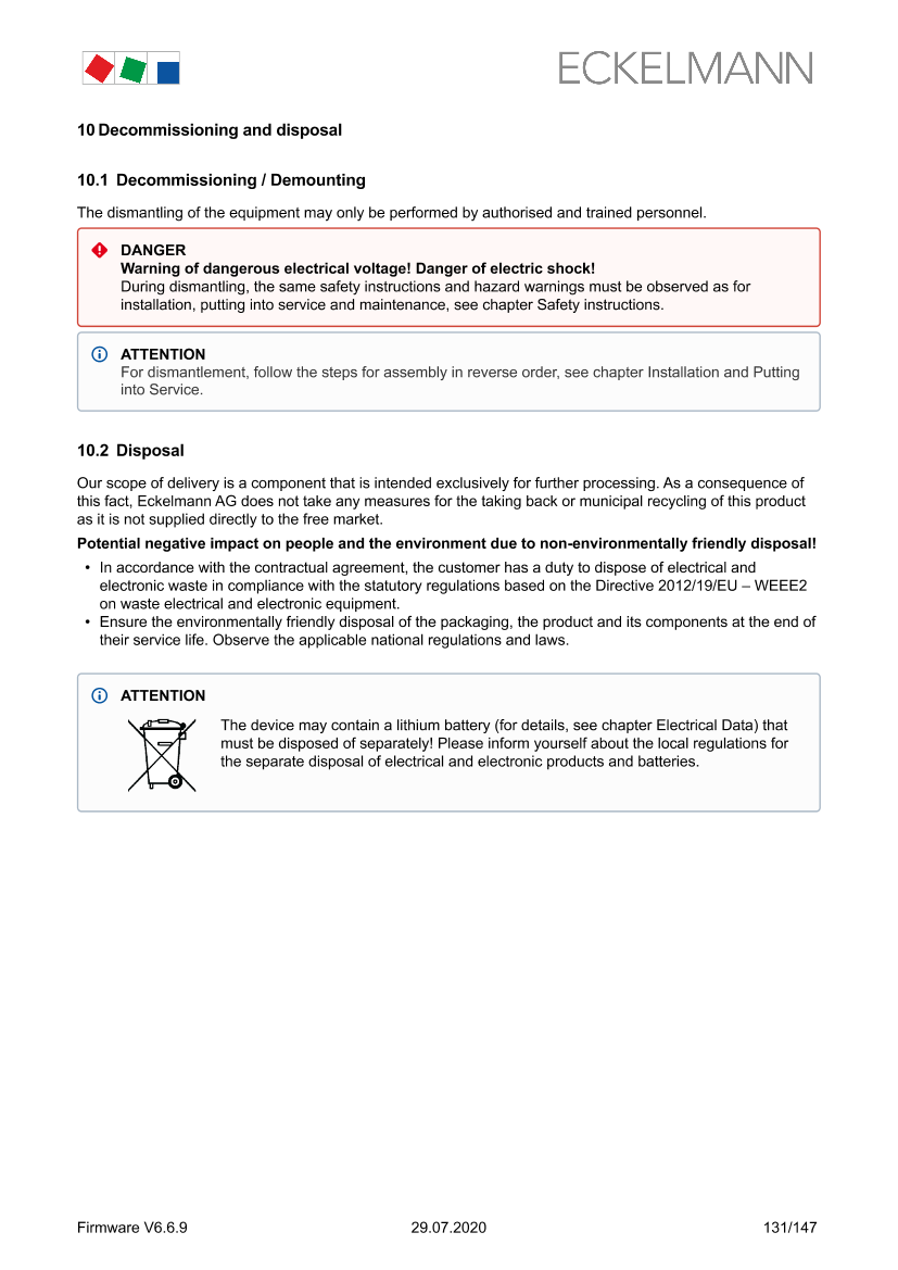 Decommissioning / Demounting