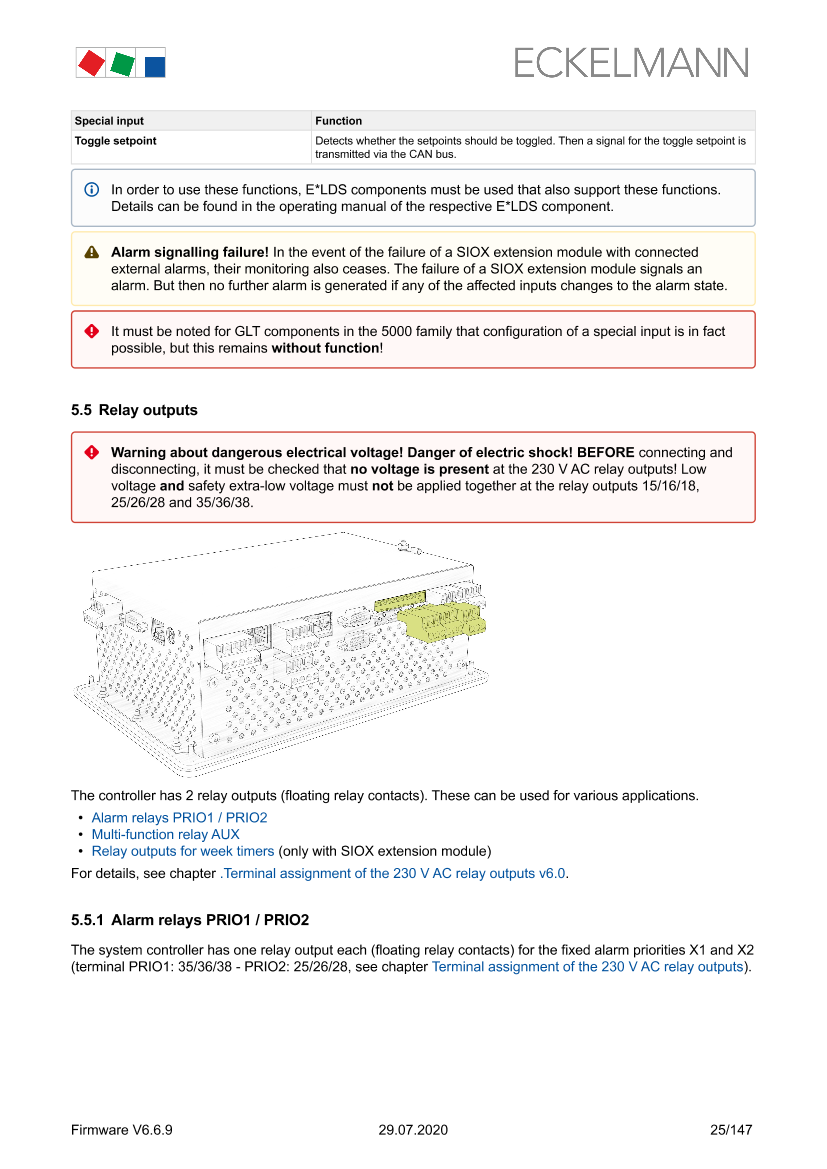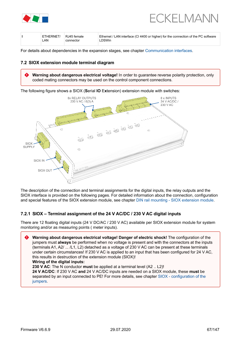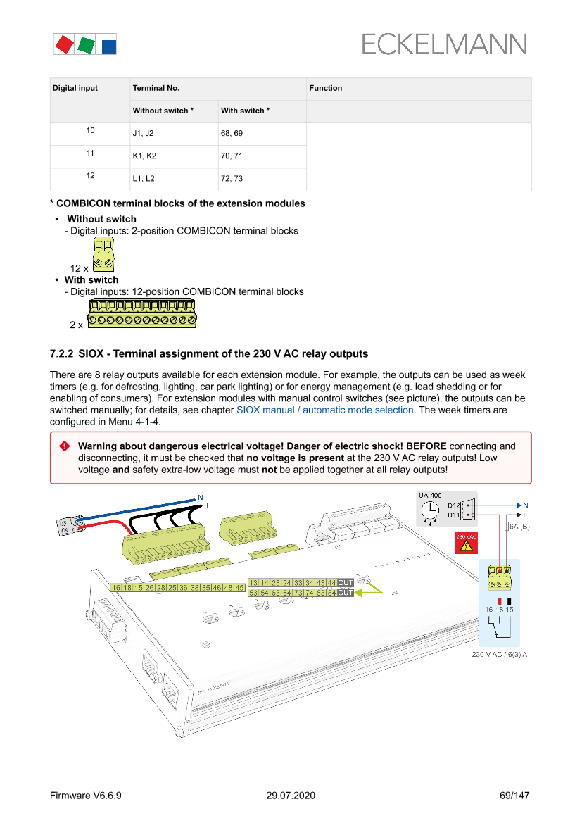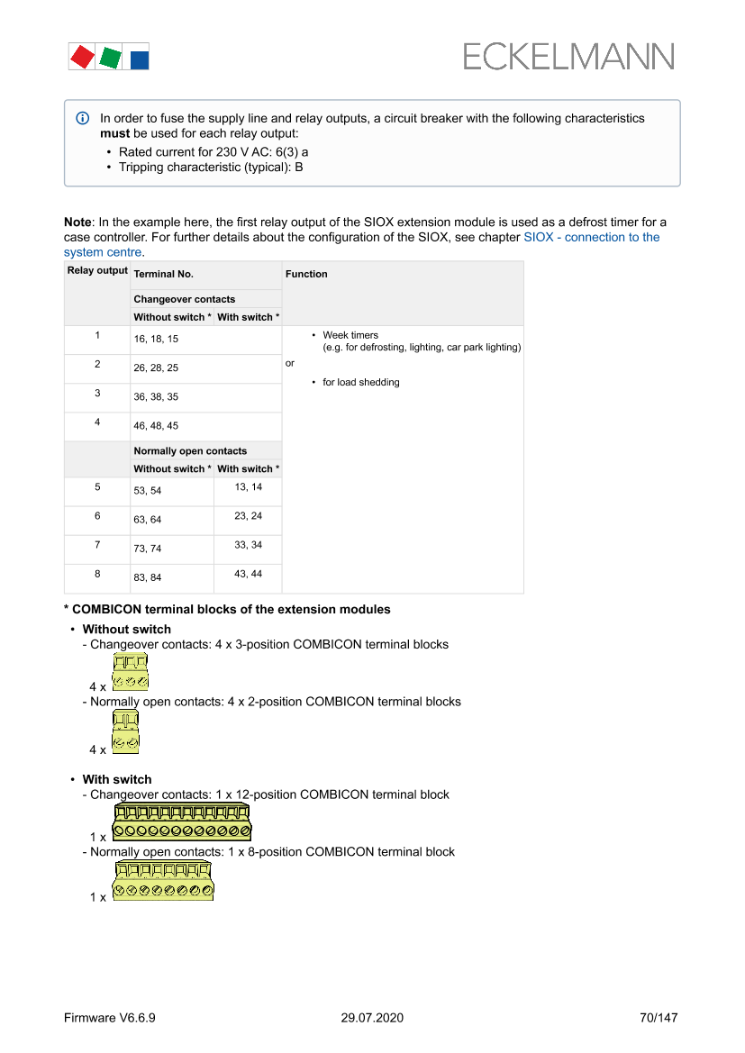 SIOX - Terminal assignment of the 230 V AC relay outputs