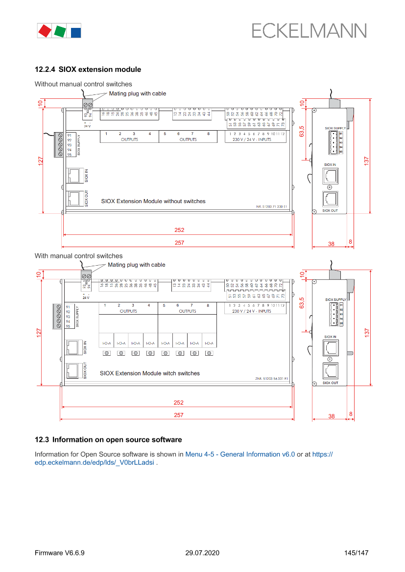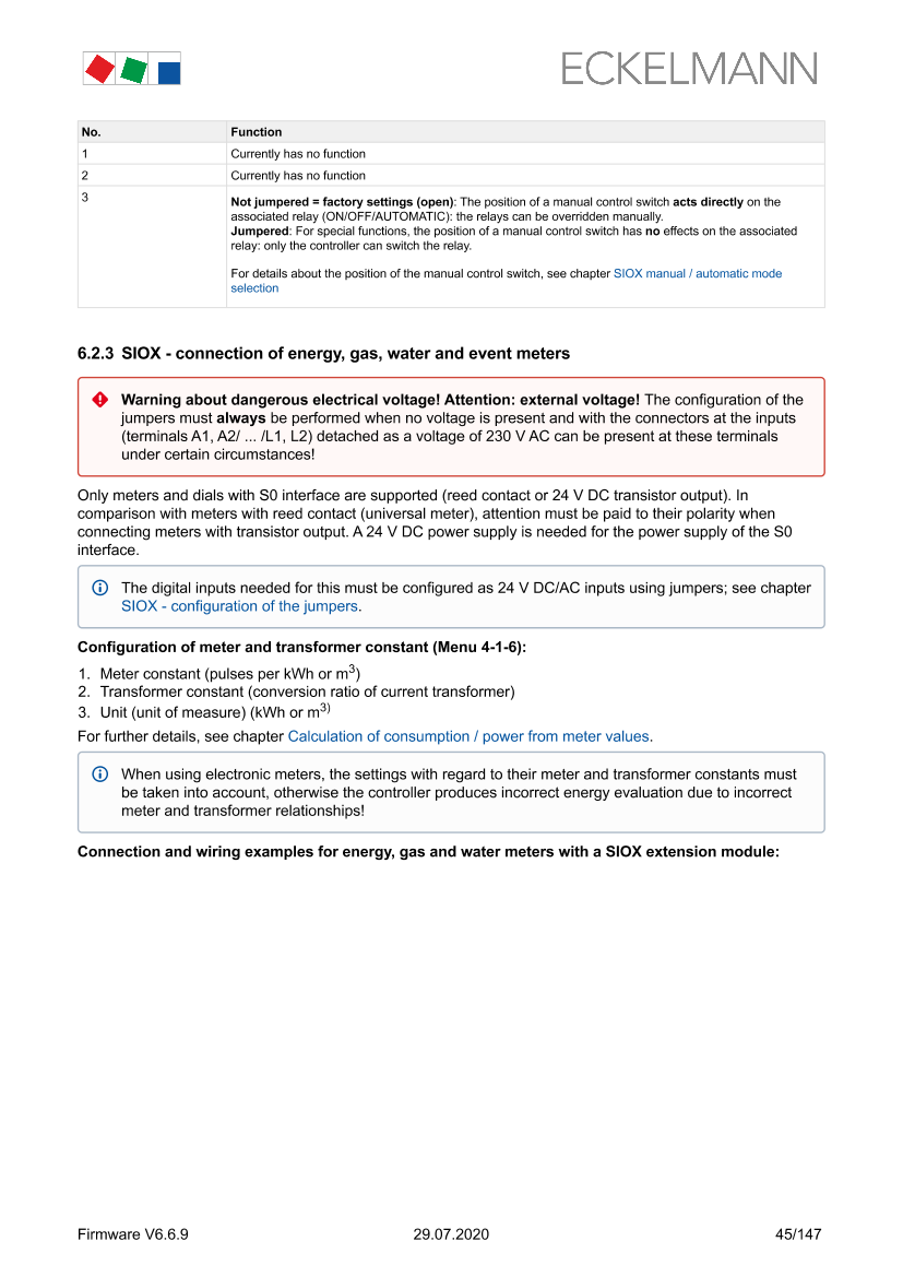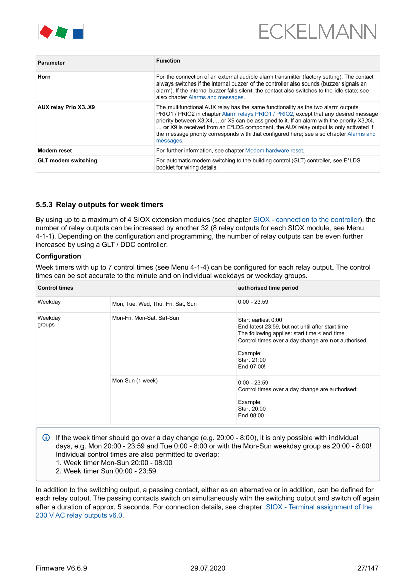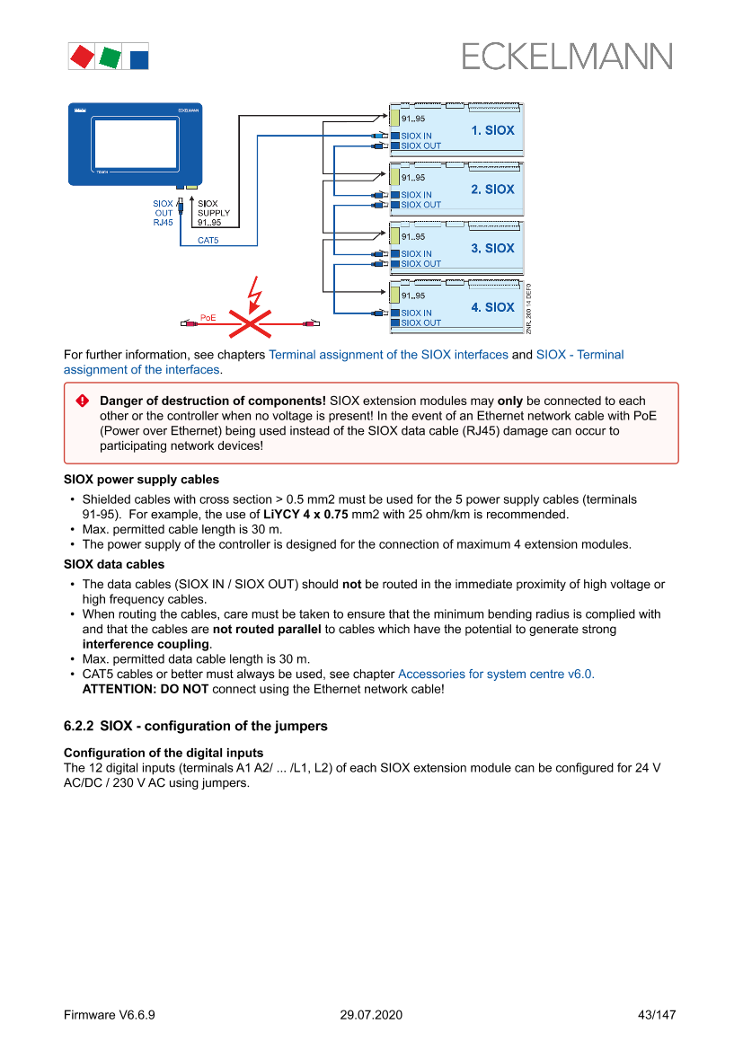 SIOX - Terminal assignment of the 230 V AC relay outputs