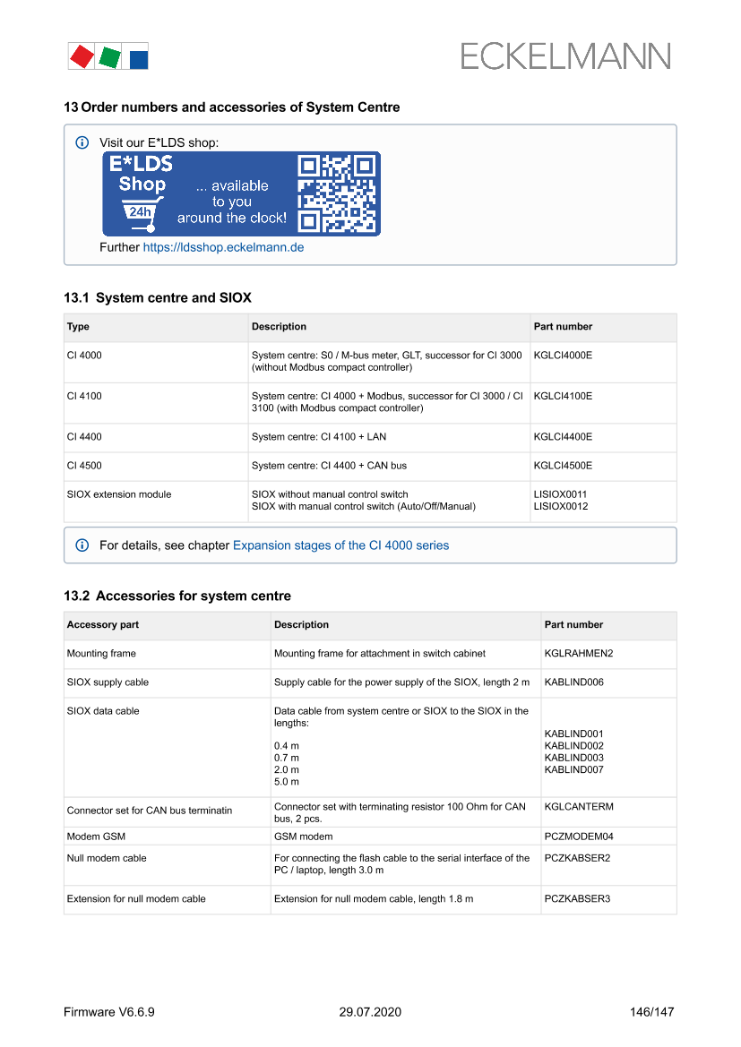 Order numbers and accessories of System Centre