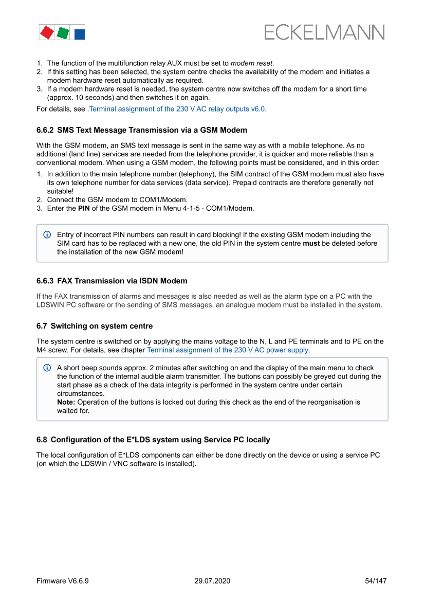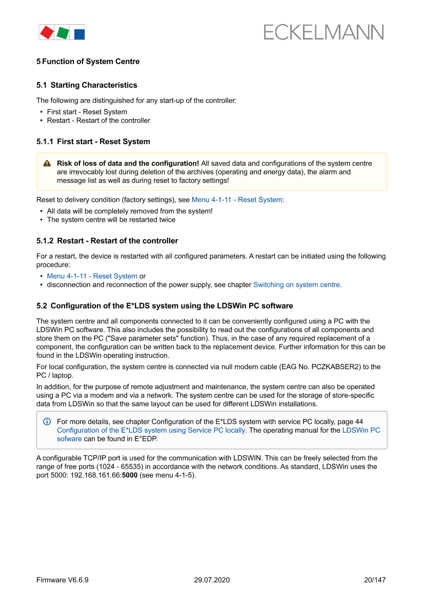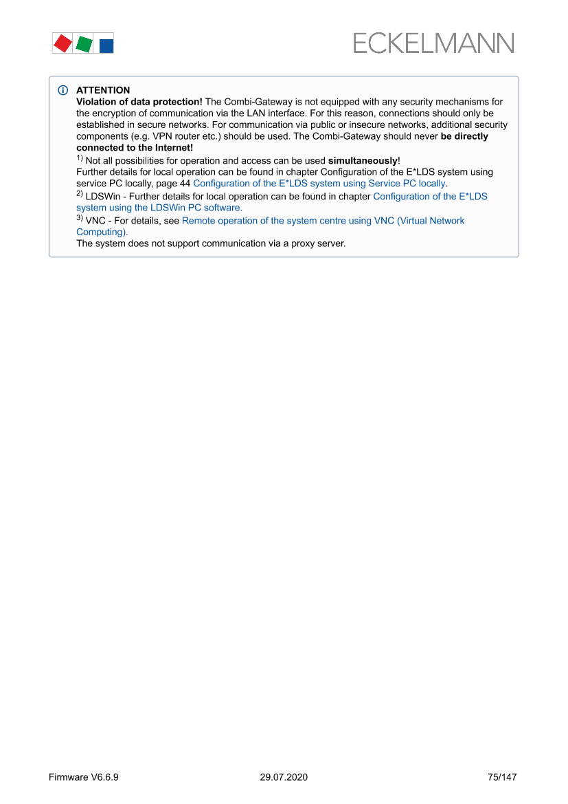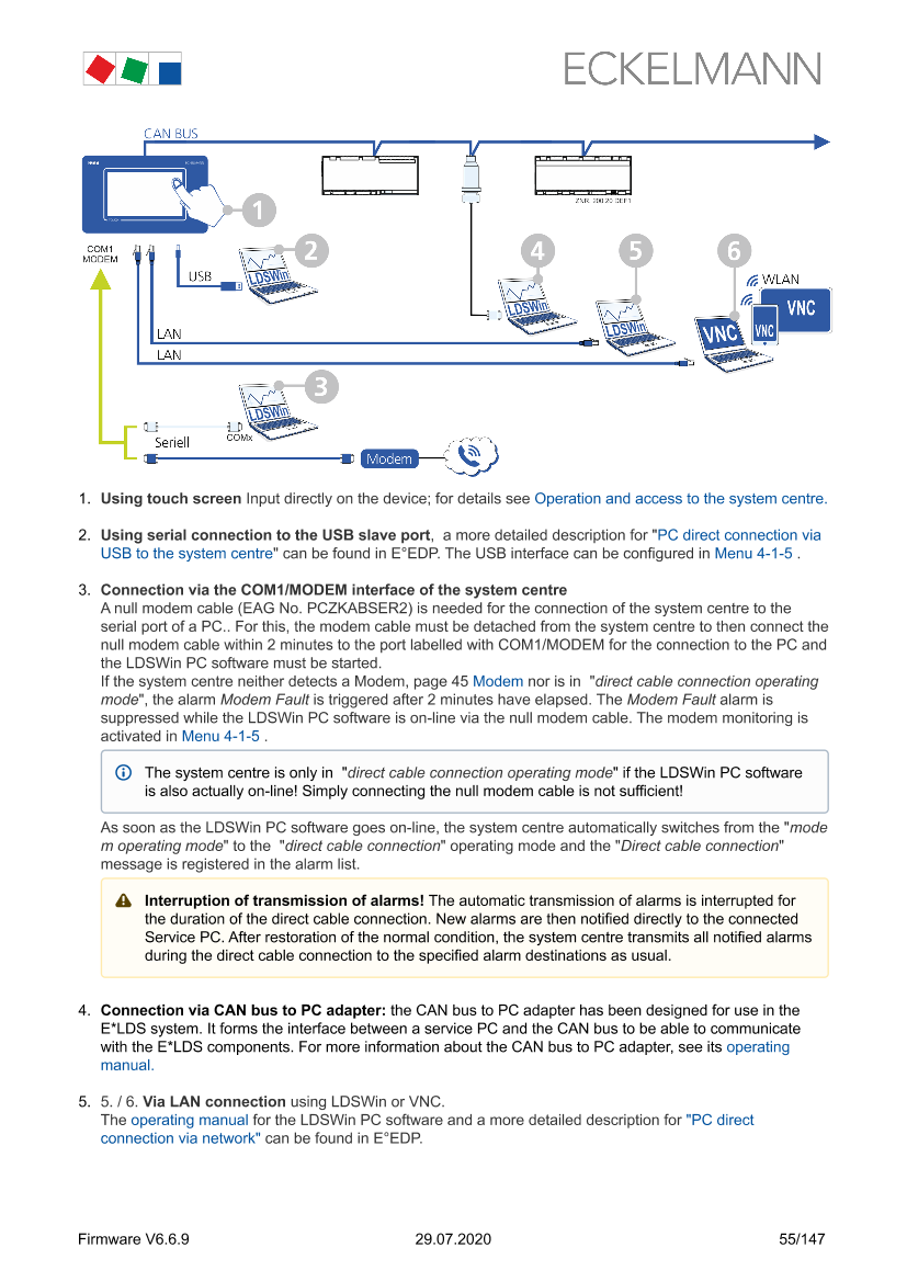 Configuration of the E*LDS system using Service PC locally
