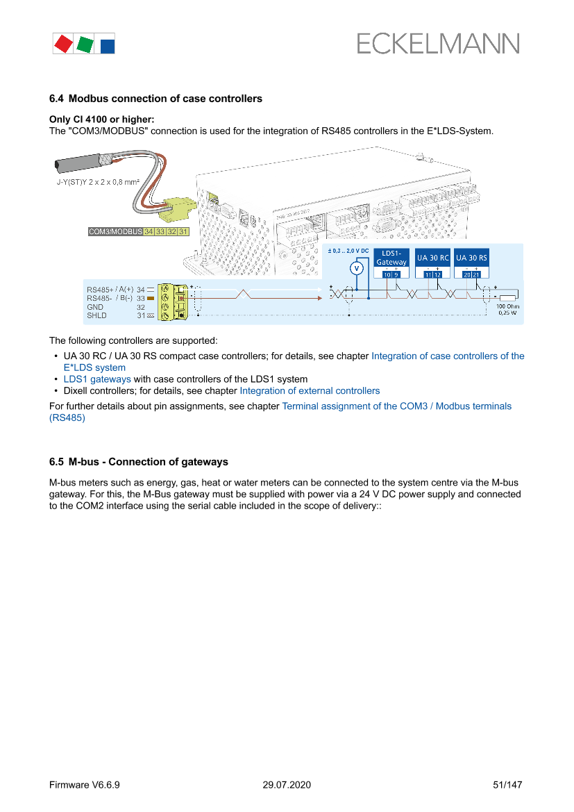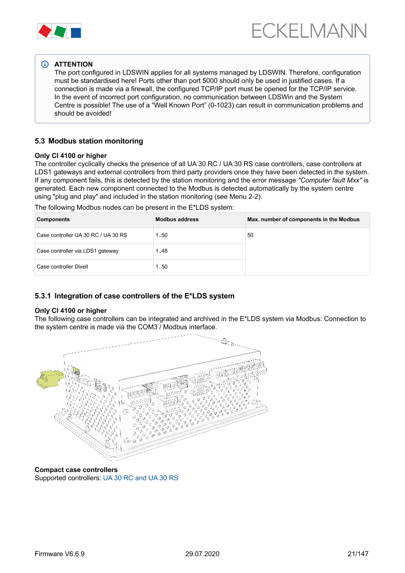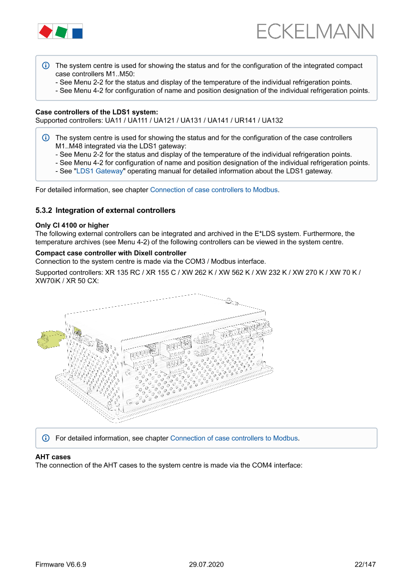 Modbus connection of case controllers