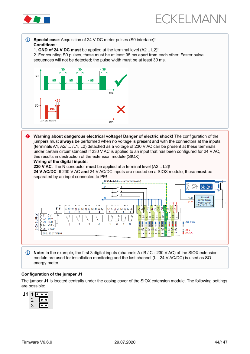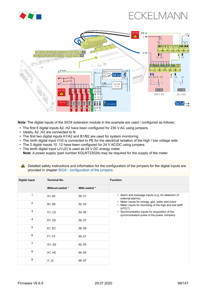 SIOX – Terminal assignment of the 24 V AC/DC / 230 V AC digital inputs