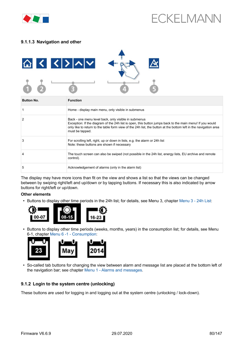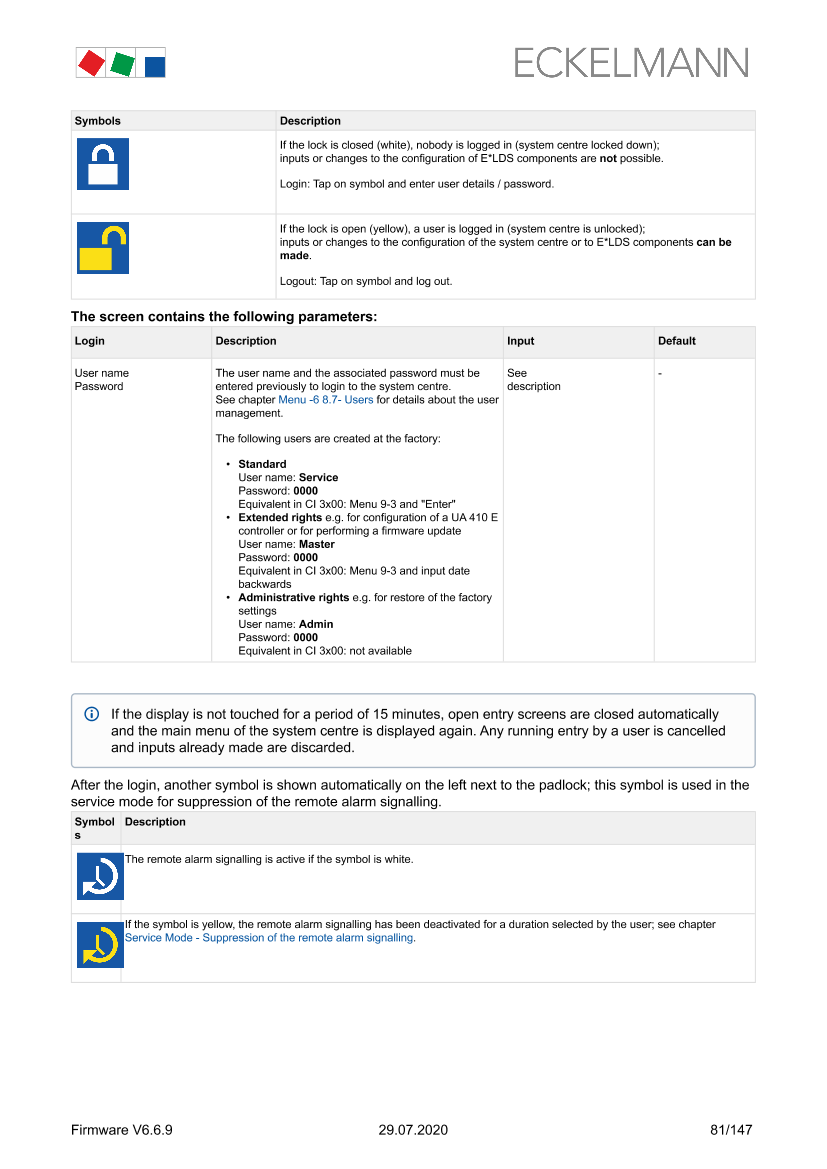 Login to the system centre (unlocking)