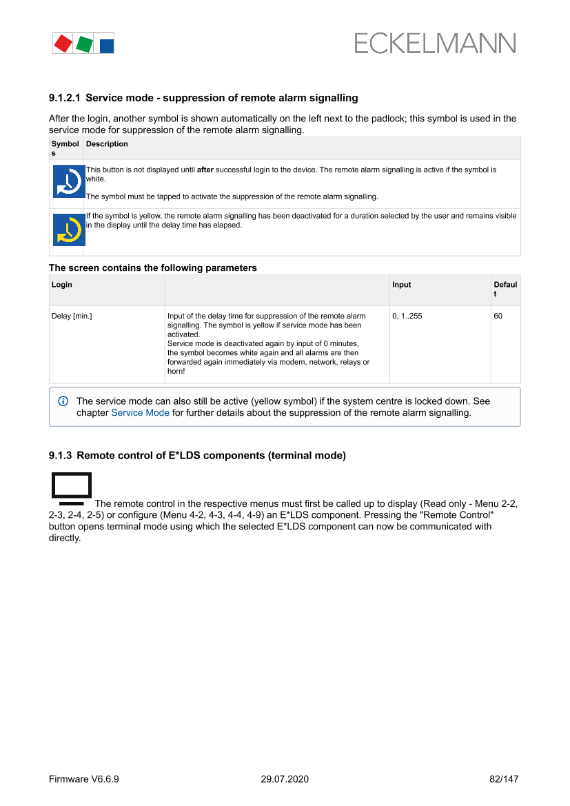 Service mode - suppression of remote alarm signalling