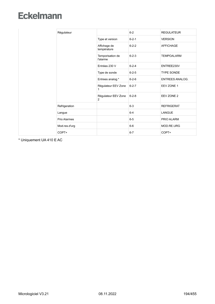 Alarmes et messages UA 4xx E