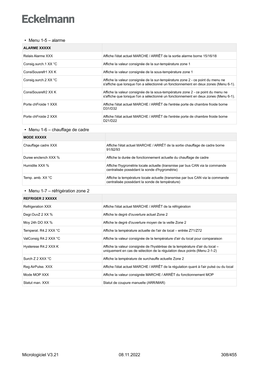 Menu 2 – valeurs consignées KR 160 E
