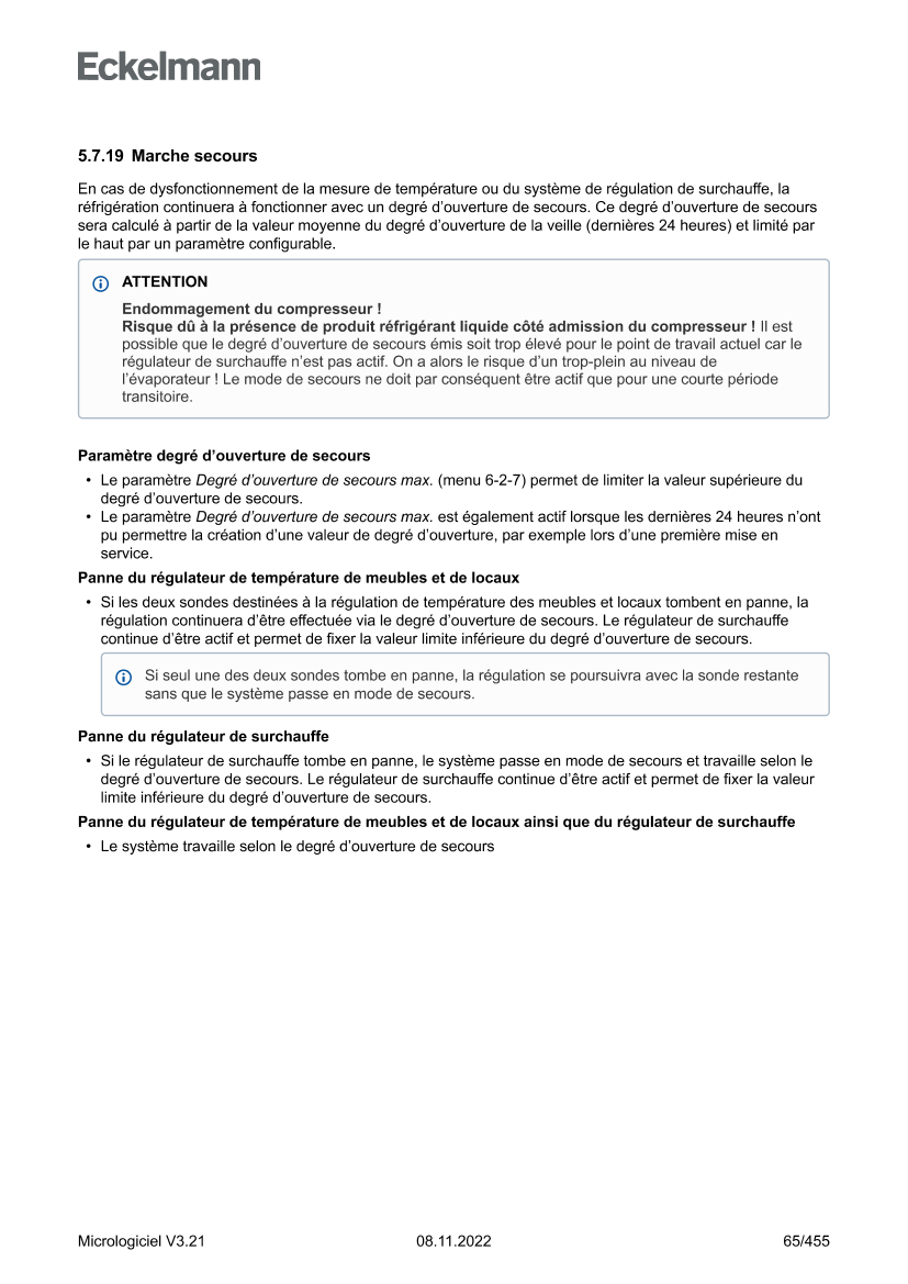 Alarme en cas de sous-dépassement de la surchauffe minimum autorisée