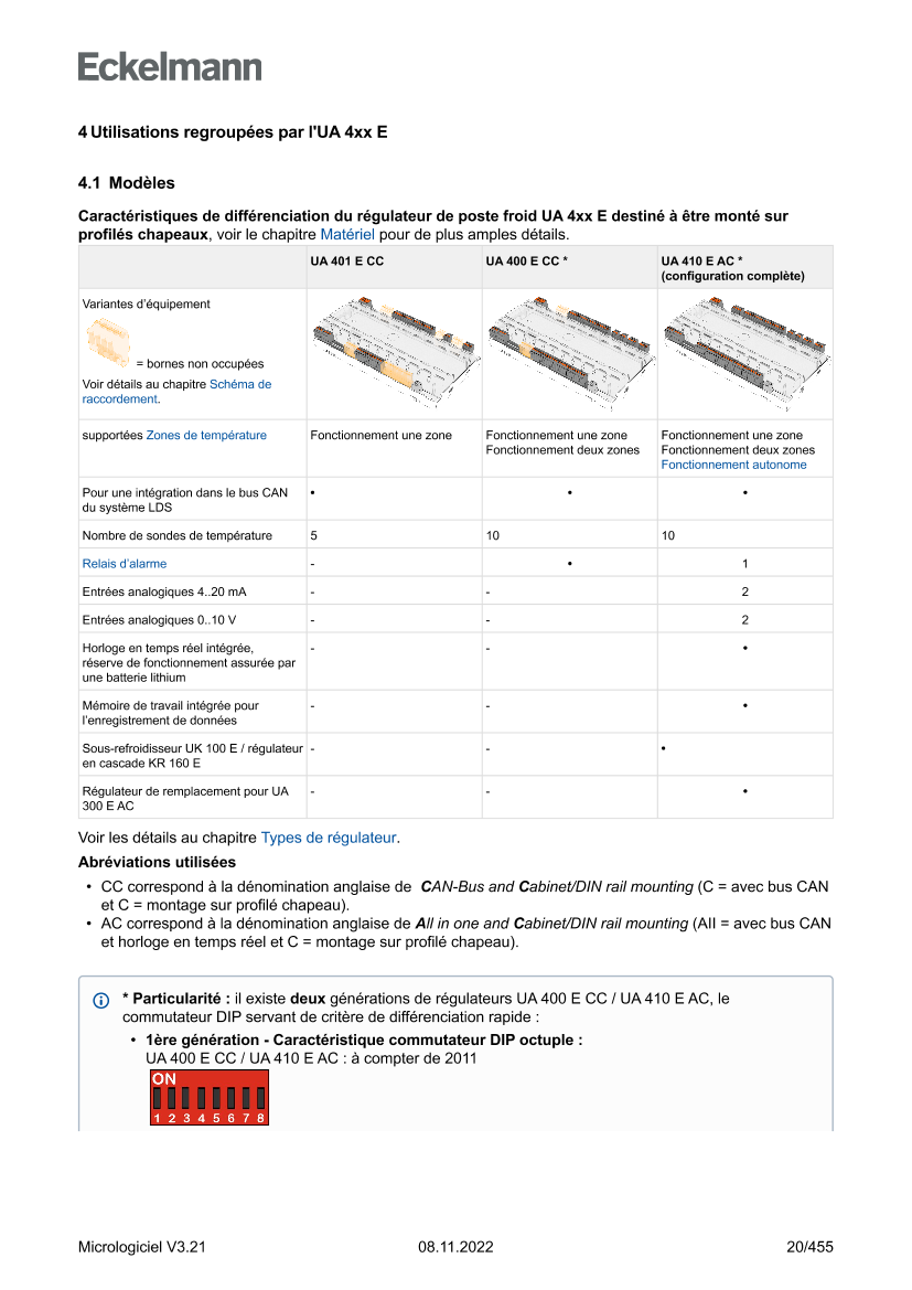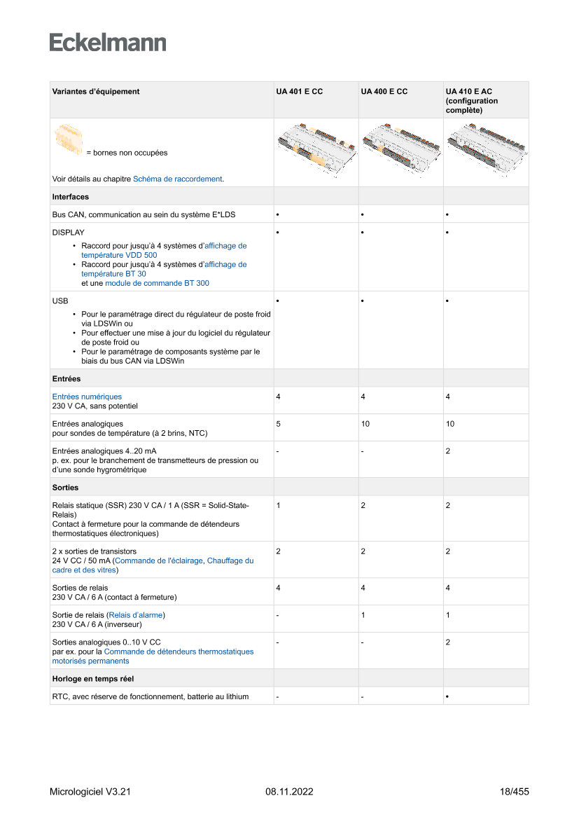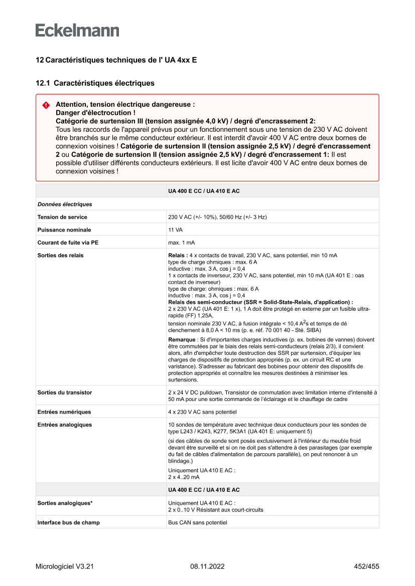 Fiche technique UA 400 E / UA 401 E / UA 410 E