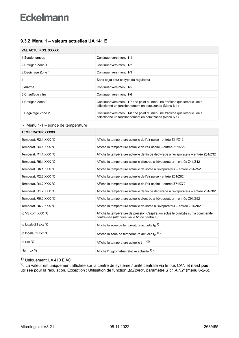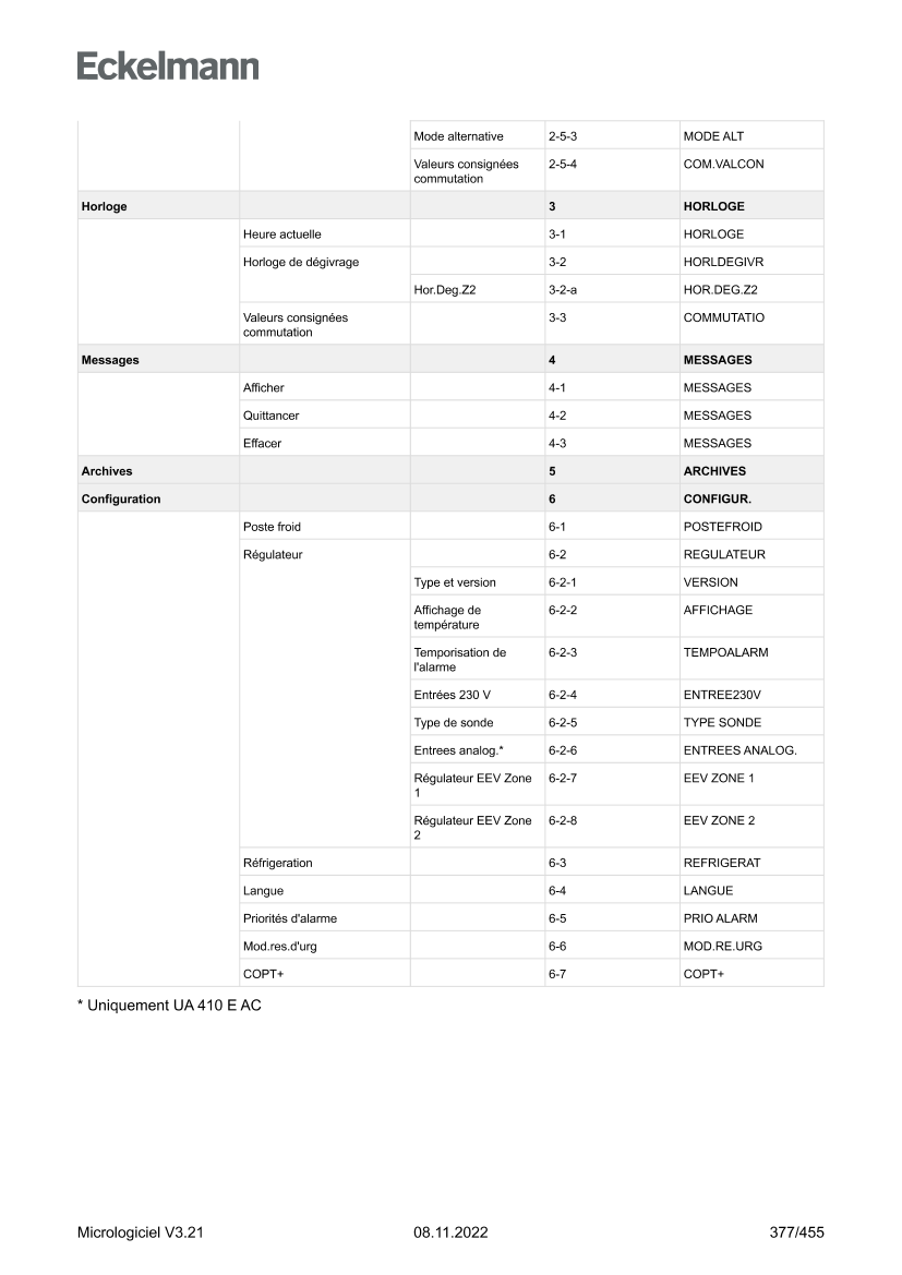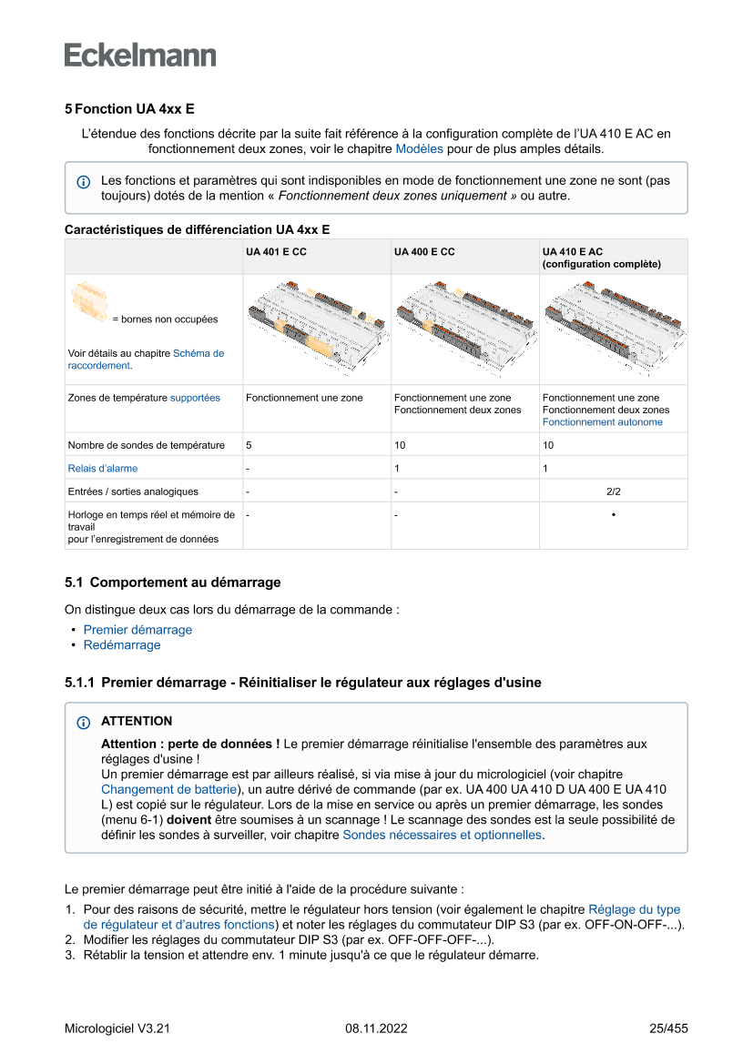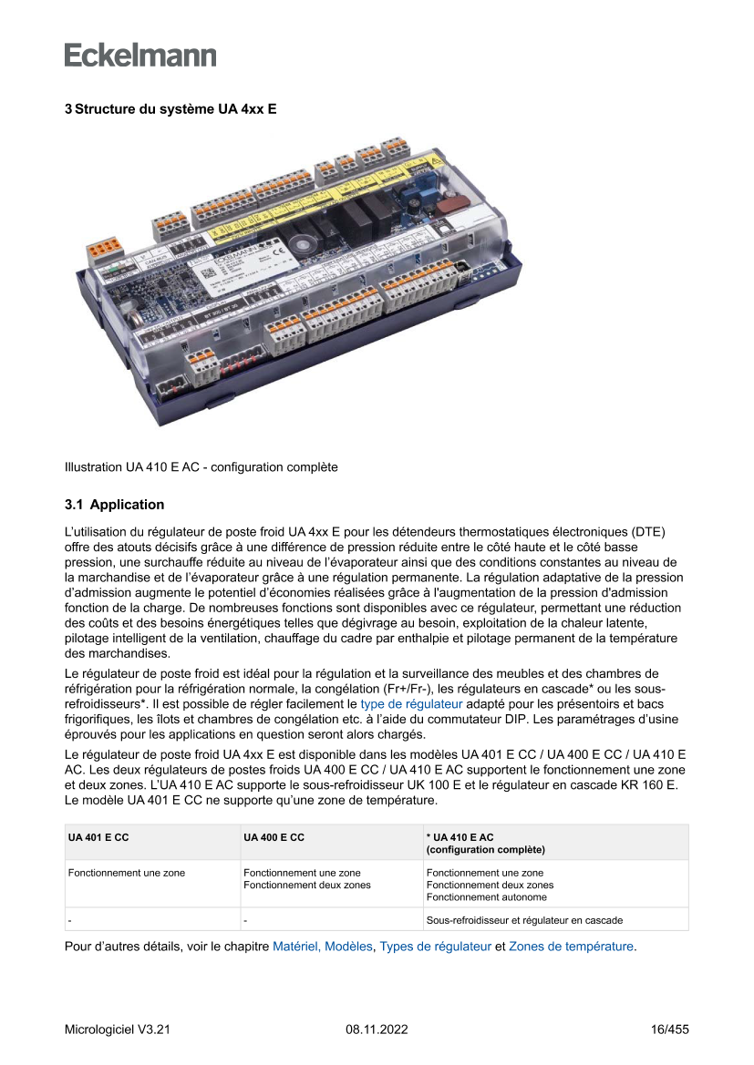 Fiche technique UA 400 E / UA 401 E / UA 410 E