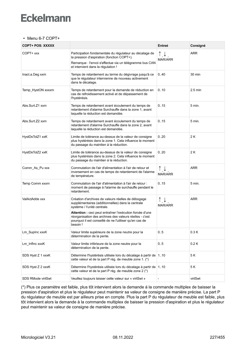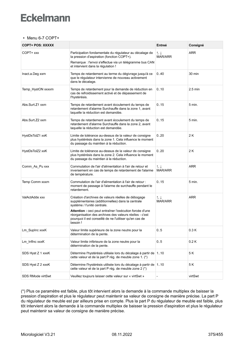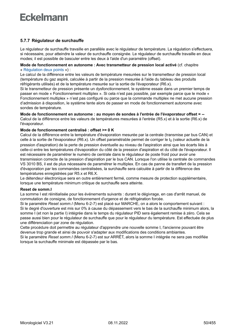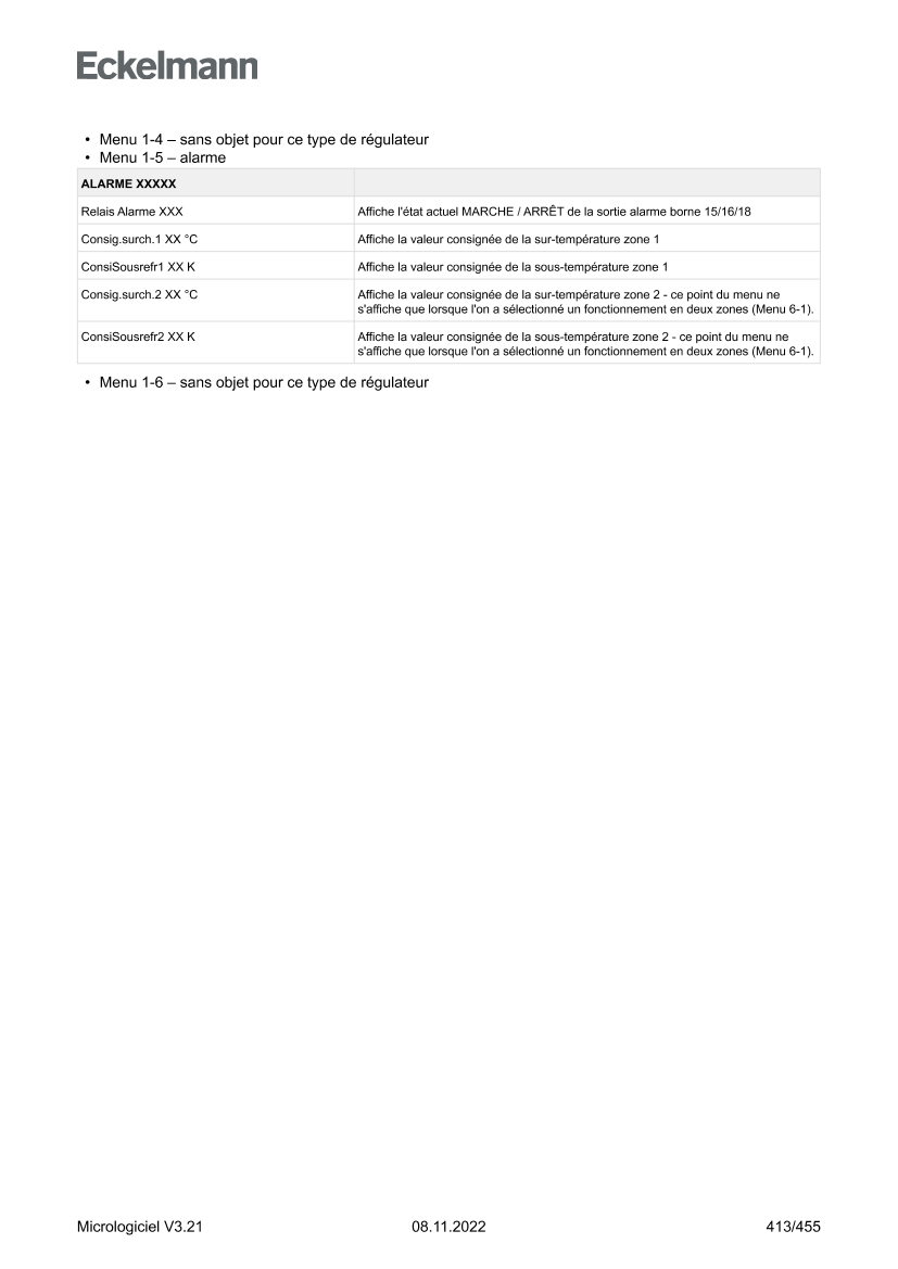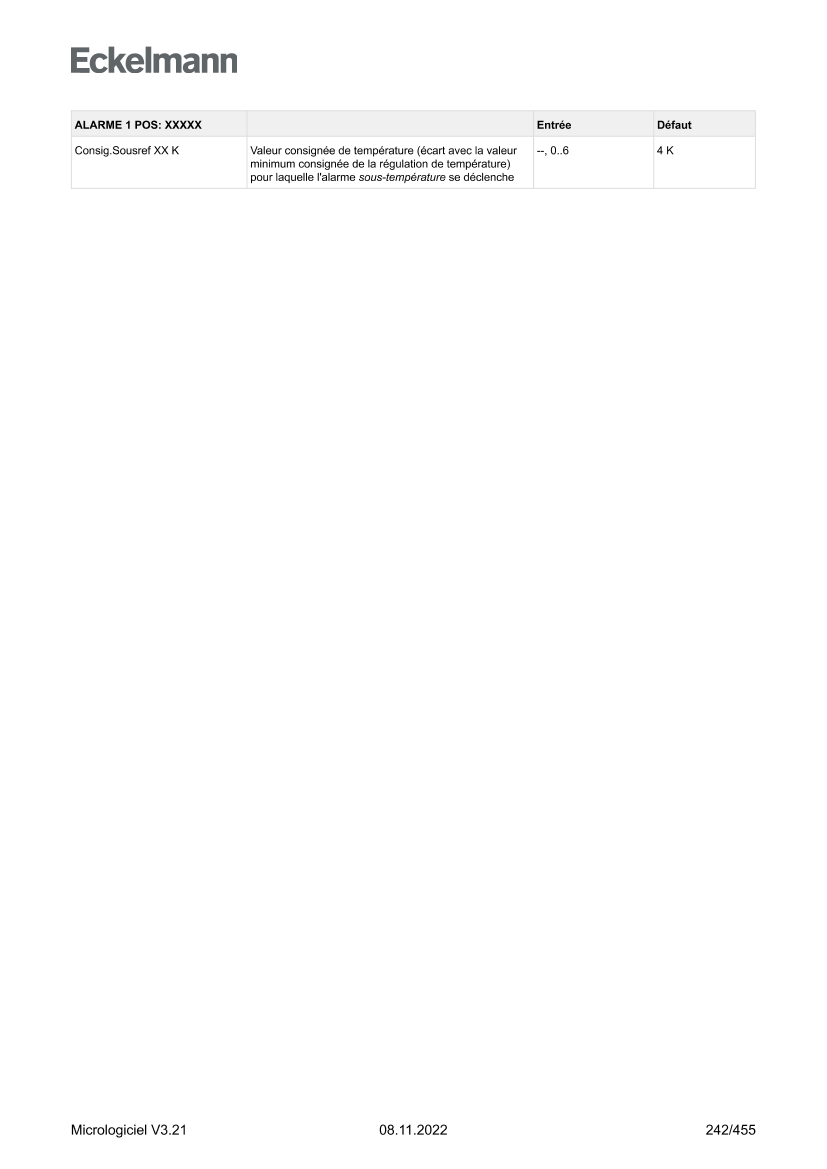Alarme en cas de sous-dépassement de la surchauffe minimum autorisée