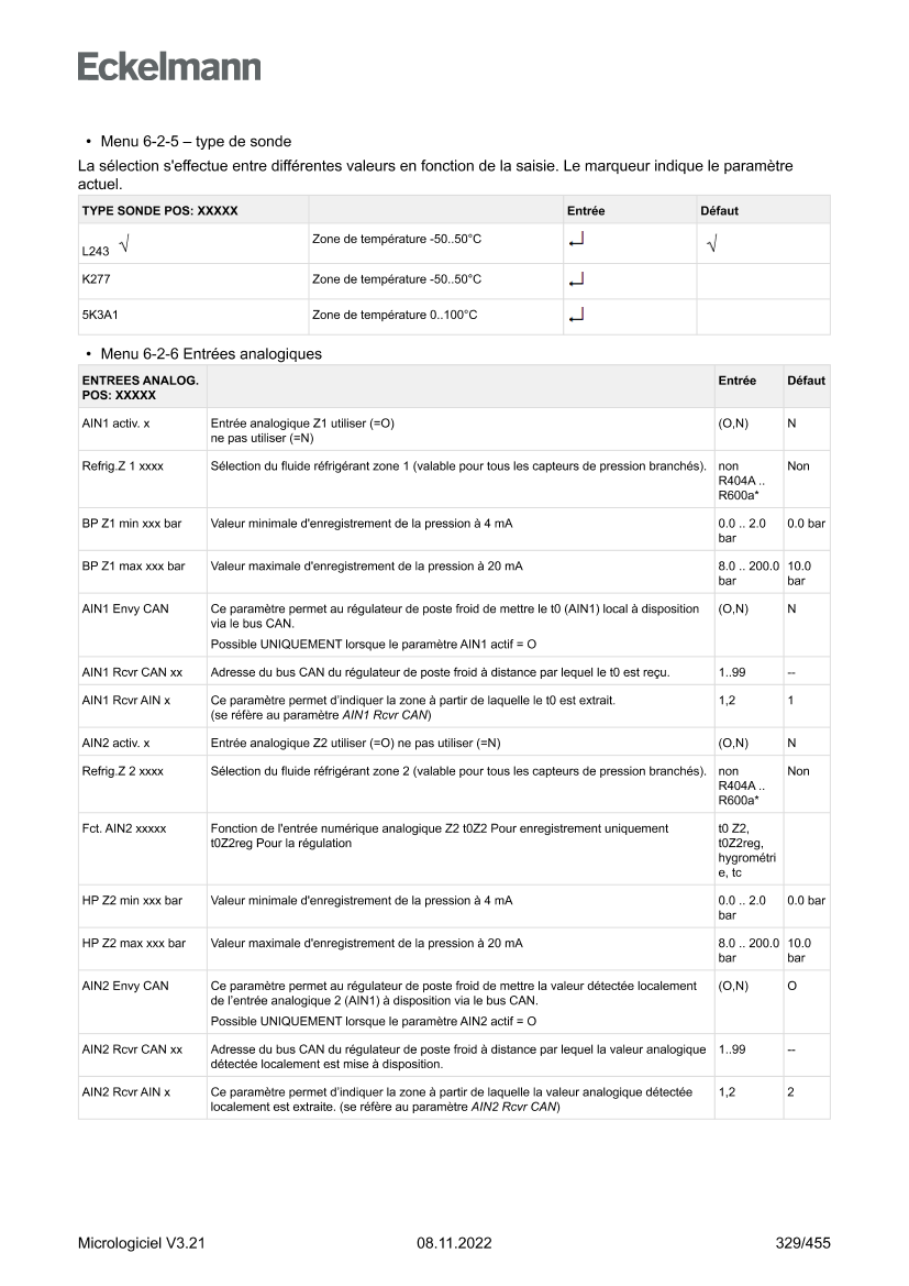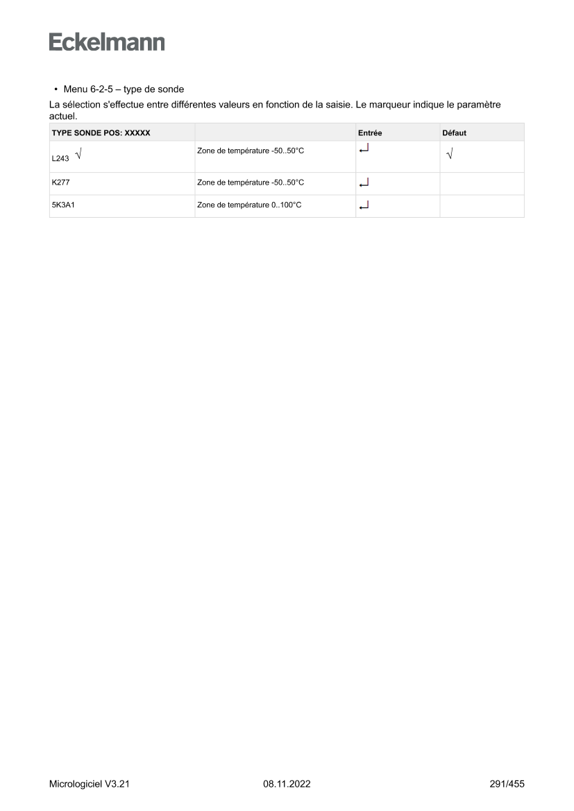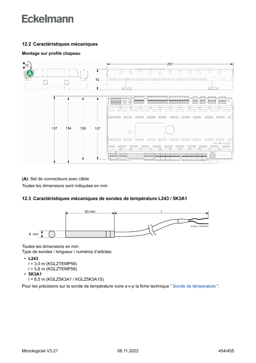 Caractéristiques mécaniques de sondes de température L243 / 5K3A1