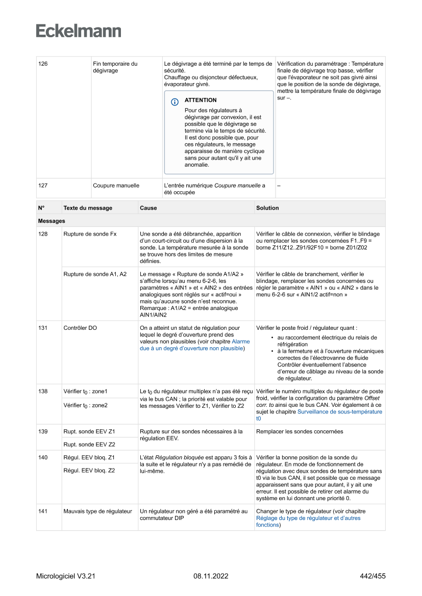 Ecrasement de l'alarme « Rupture de sonde » durant le dégivrage