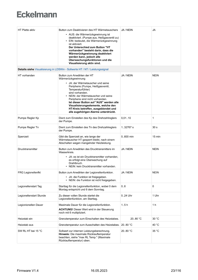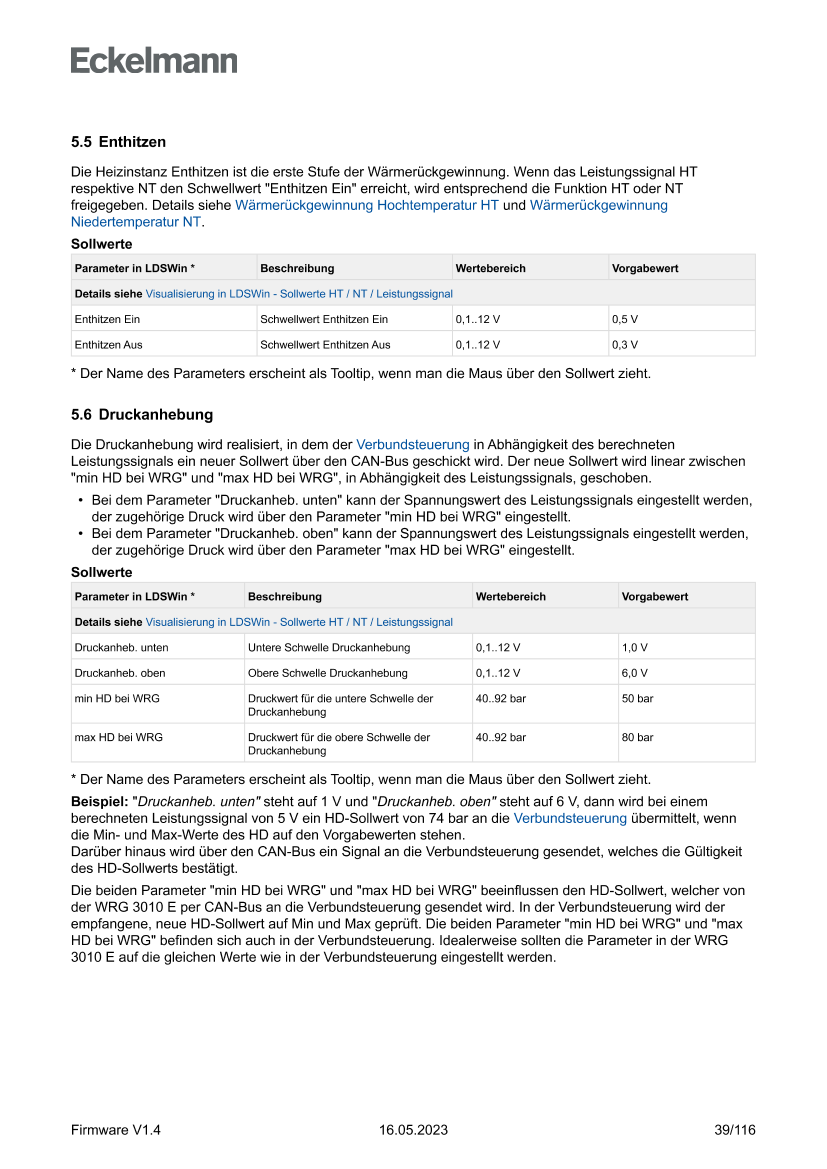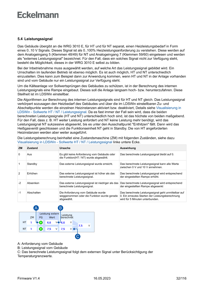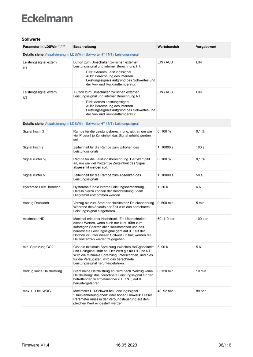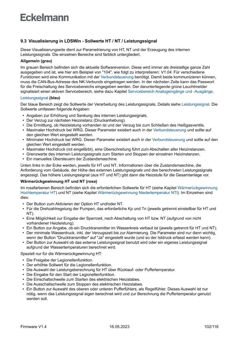 Visualisierung in LDSWin - Sollwerte HT / NT / Leistungssignal