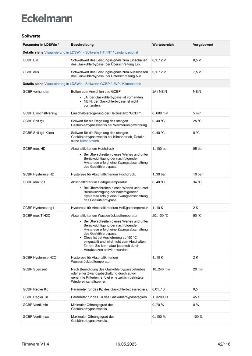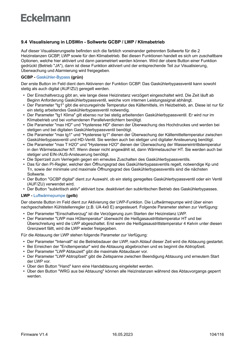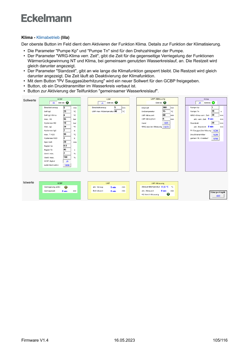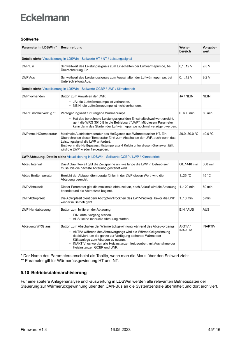 Visualisierung in LDSWin - Sollwerte GCBP / LWP / Klimabetrieb