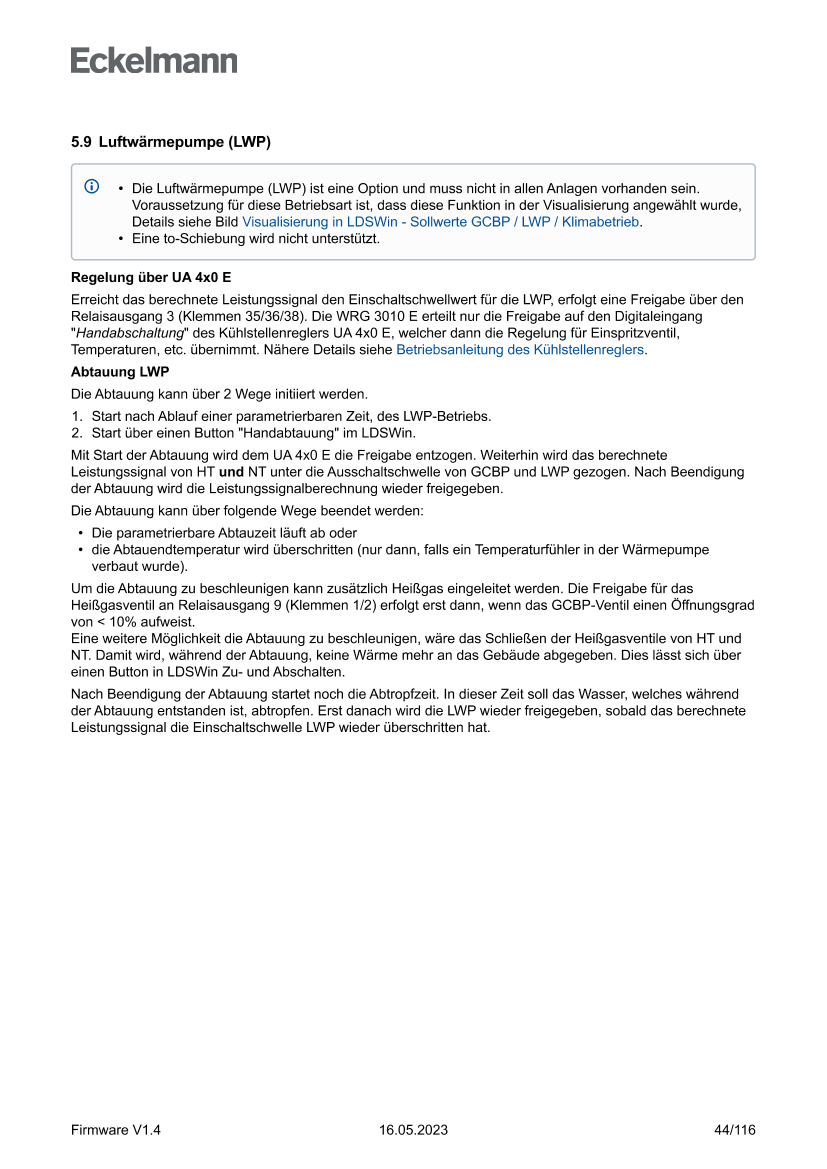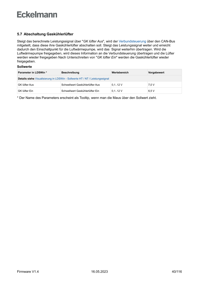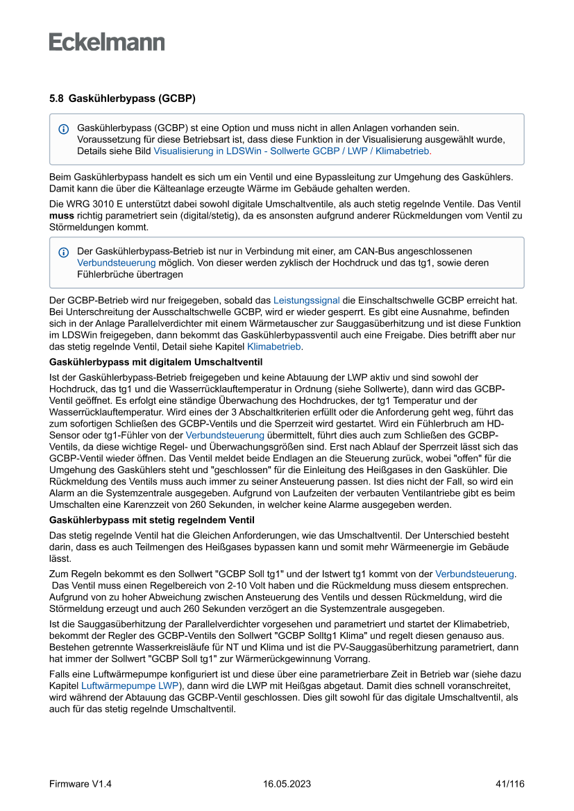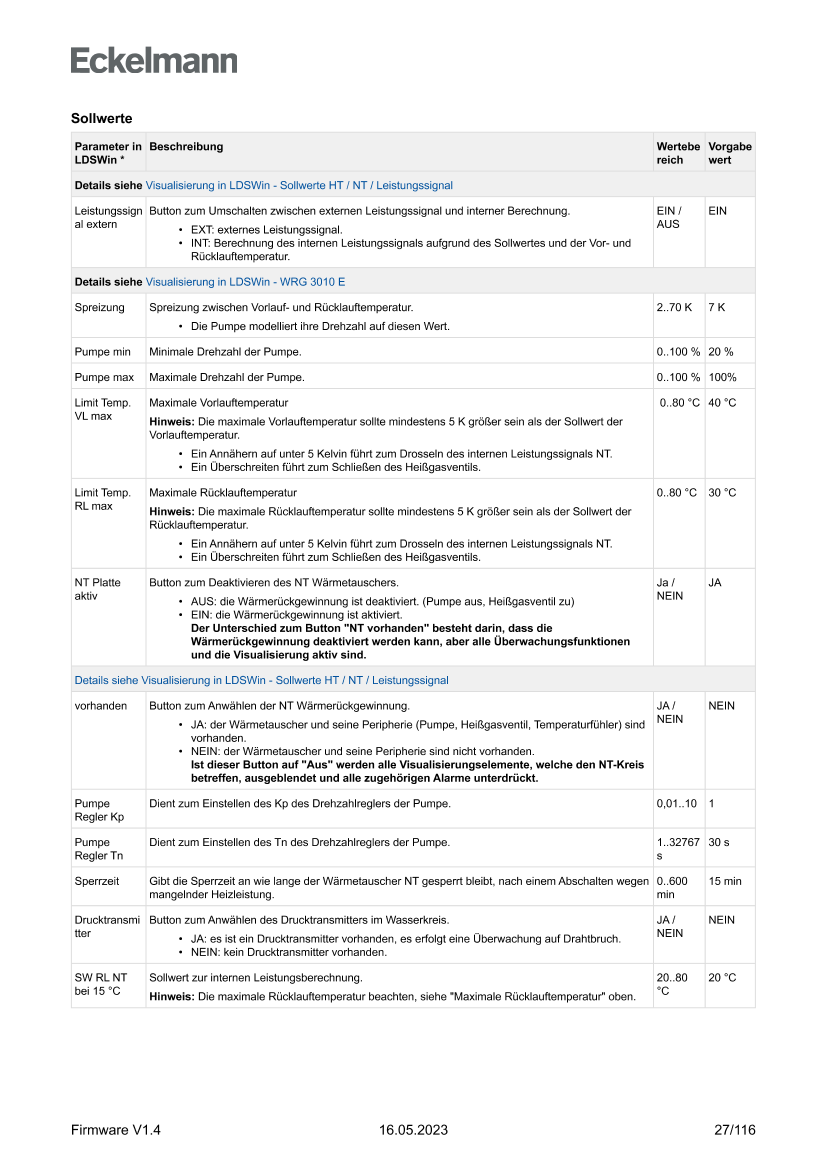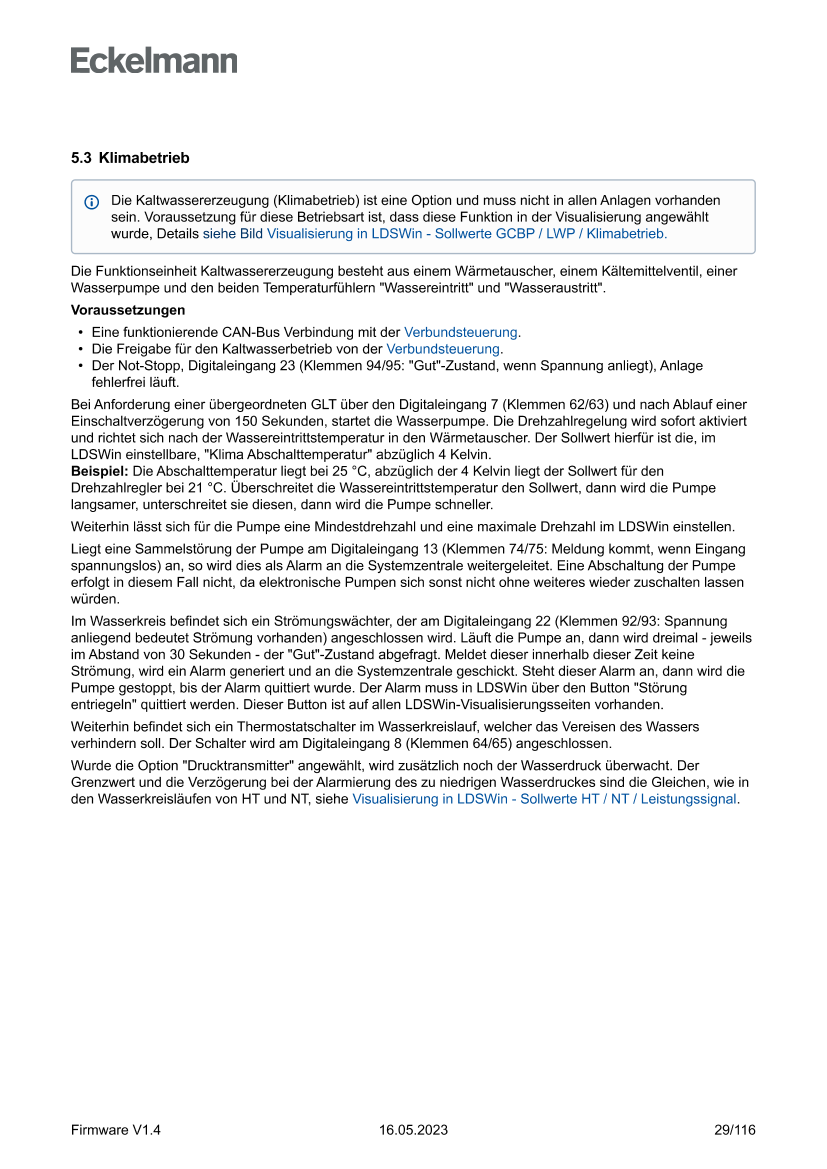Visualisierung in LDSWin - Sollwerte GCBP / LWP / Klimabetrieb