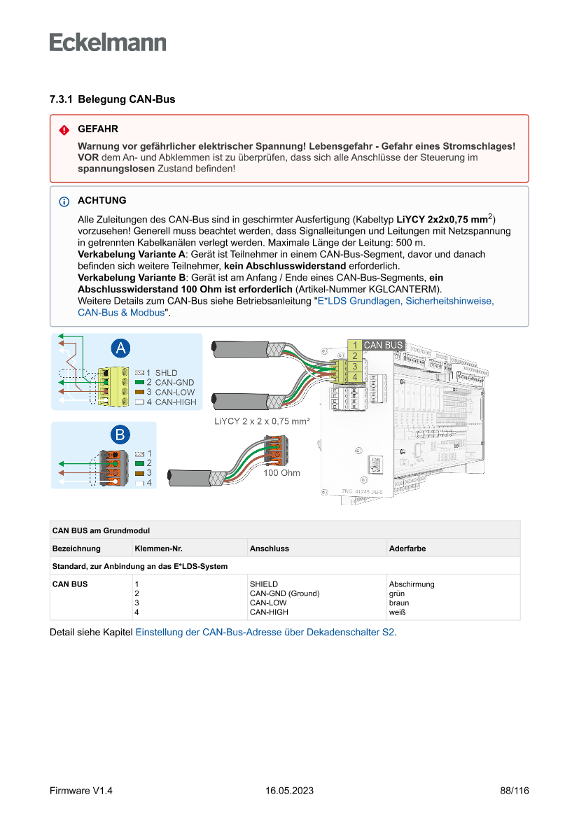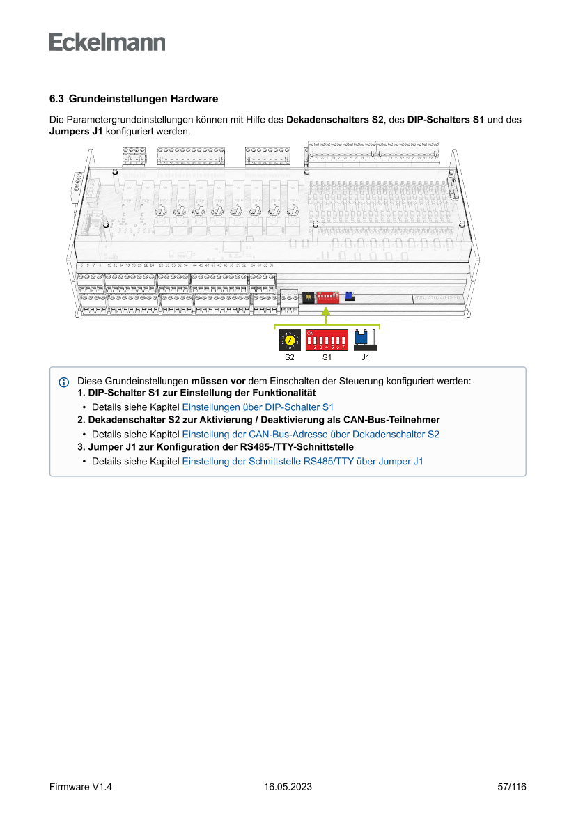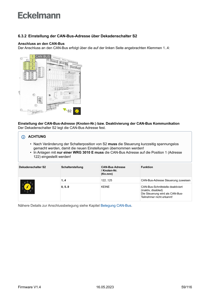 Einstellung der CAN-Bus-Adresse über Dekadenschalter S2
