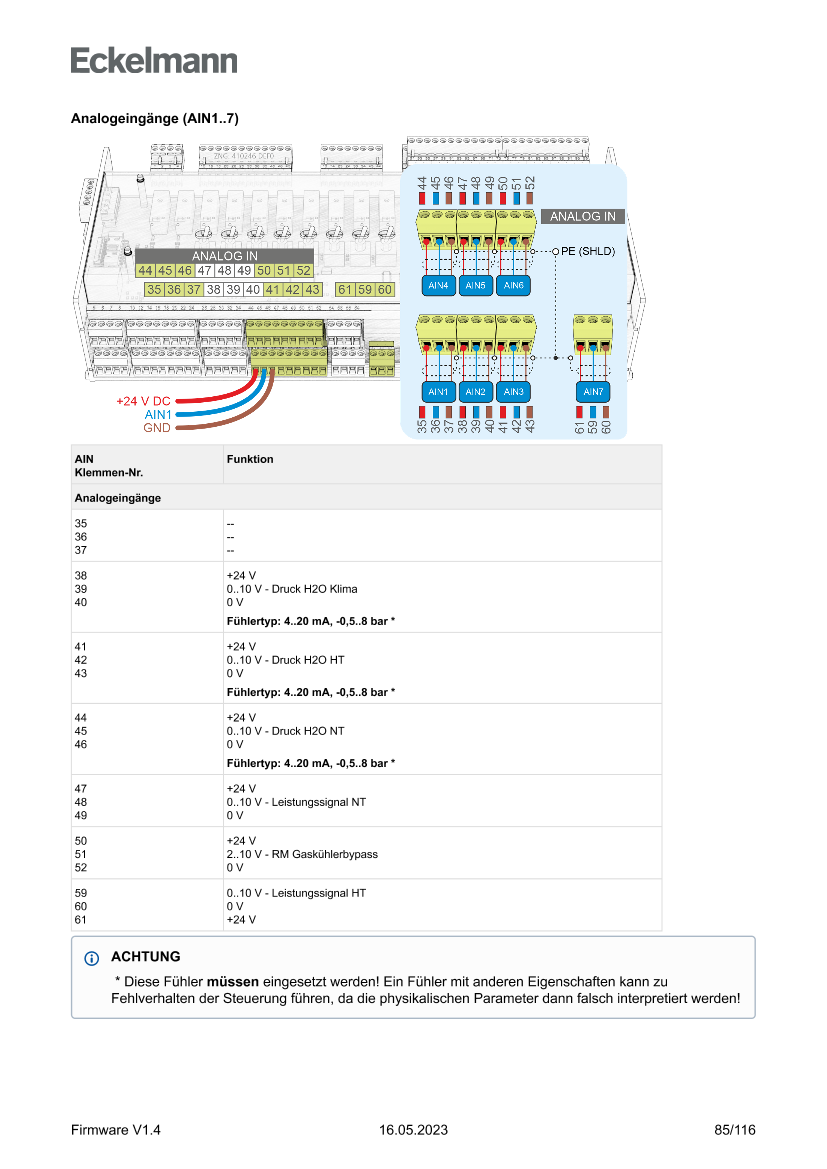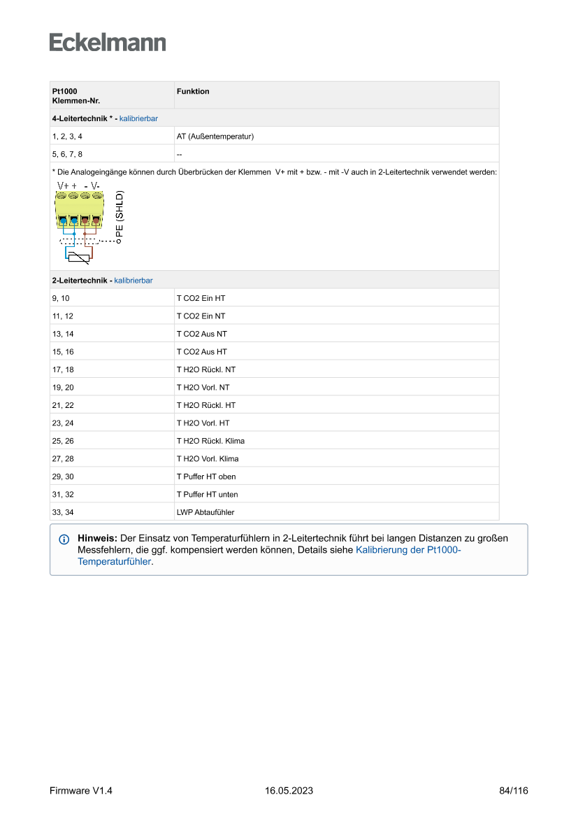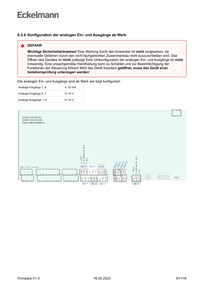Konfiguration der analogen Ein- und Ausgänge ab Werk