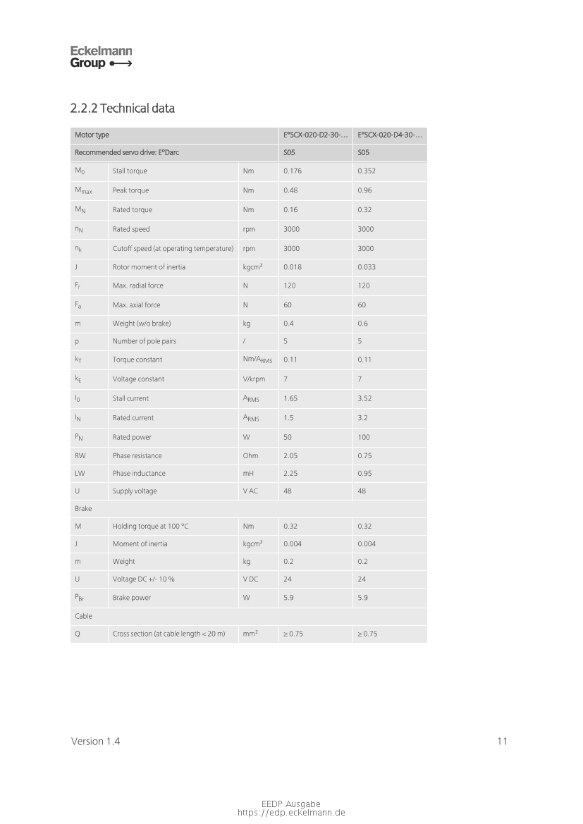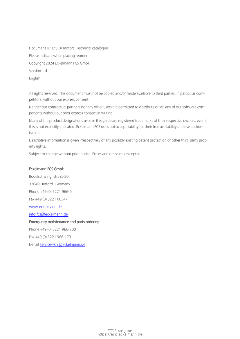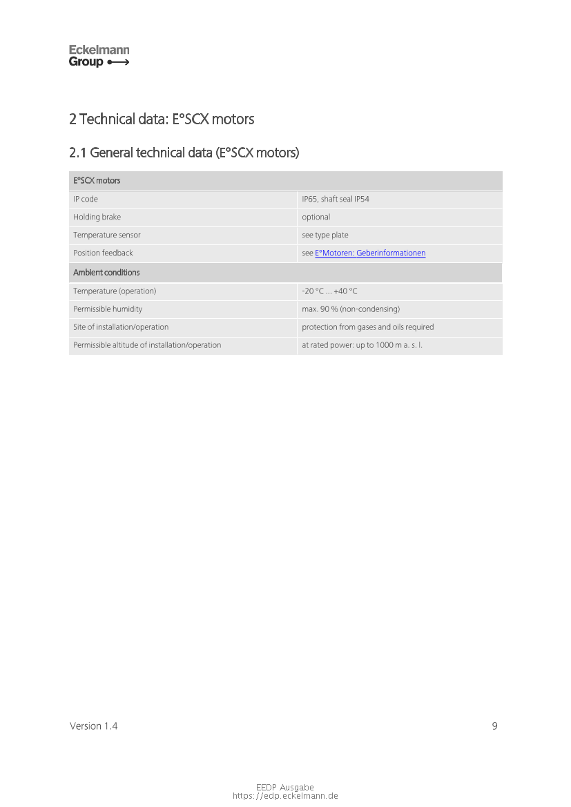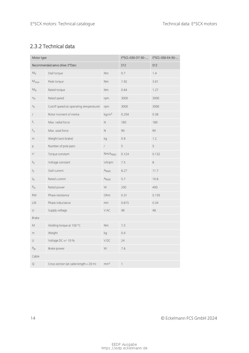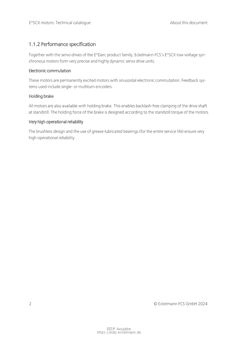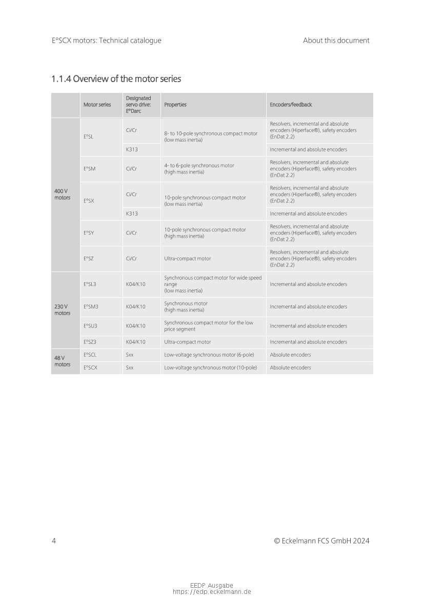 E°SCX-Motoren: Technischer Katalog- Juli 2024